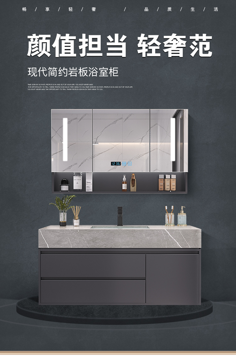 Bắc Âu tủ phòng tắm kết hợp ánh sáng hiện đại sang trọng phòng tắm rửa tay rửa mặt chậu rửa mặt bảng đá một chậu bộ phòng tắm