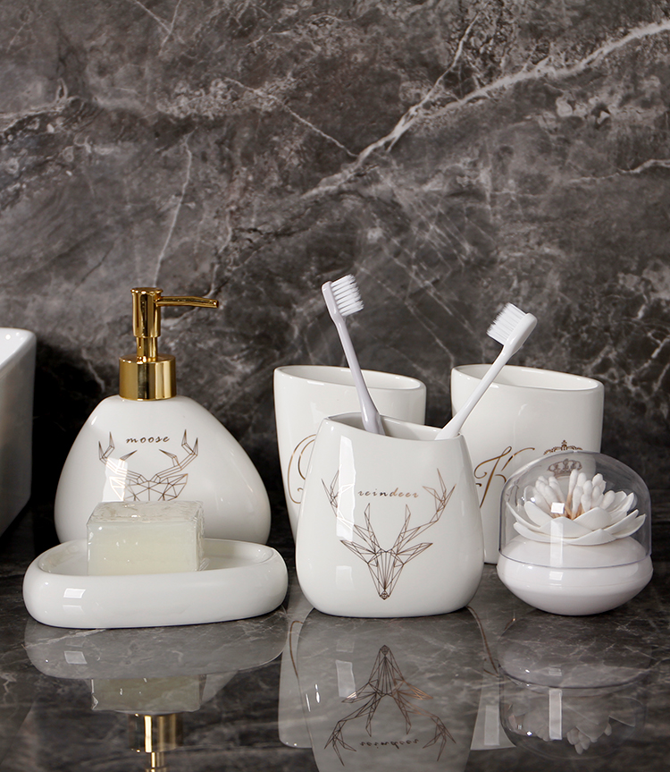 Bắc Âu vàng antler sứ vệ sinh thiết bị vệ sinh năm mảnh bộ đồ dùng phòng tắm bộ dụng cụ phòng tắm cốc nước súc miệng hộp tăm bông