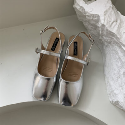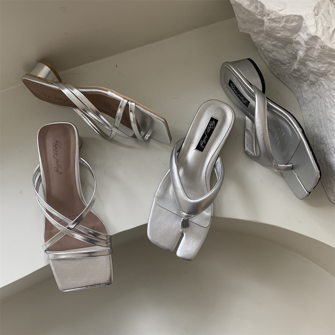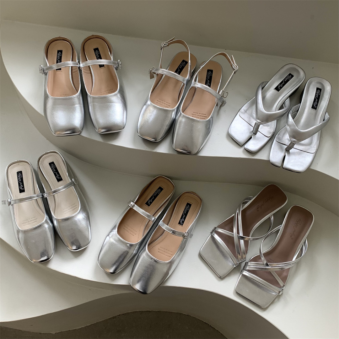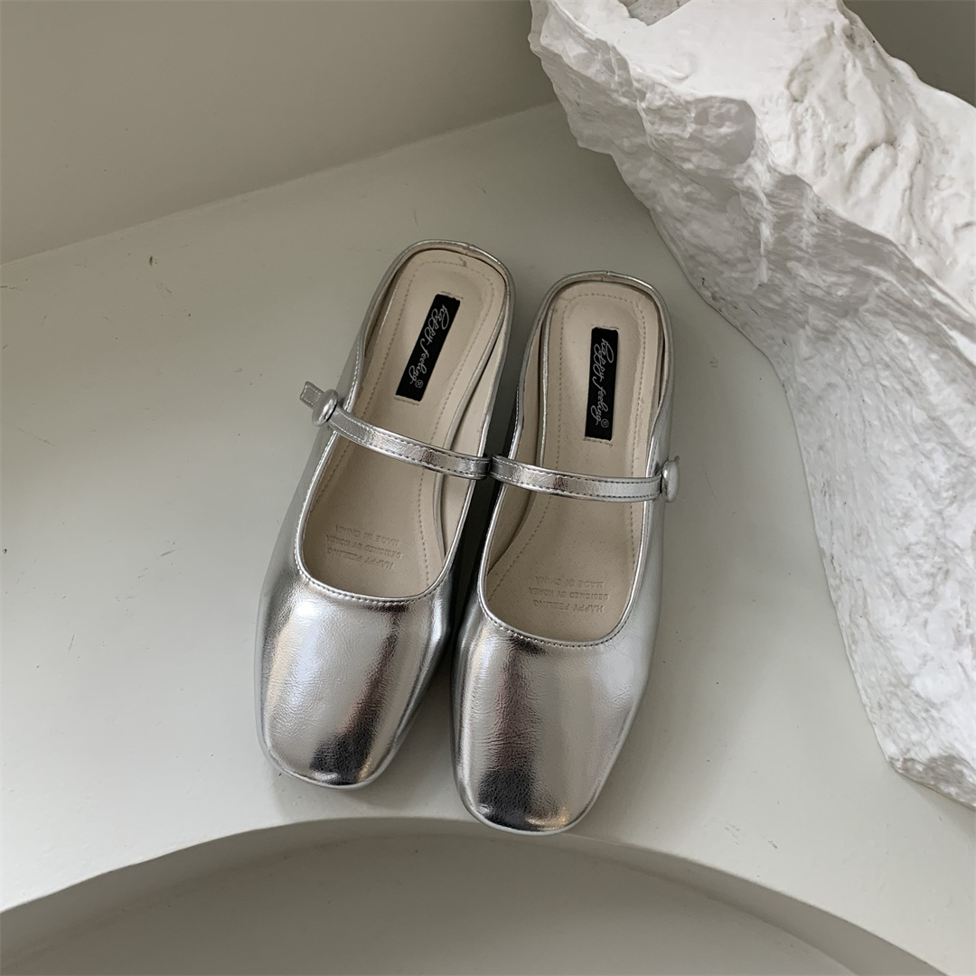 Bạc Bao Đầu nửa kéo kiểu Pháp dép thích hợp cho nữ đi dép mùa hè 2023 phong cách mới với váy giày đơn