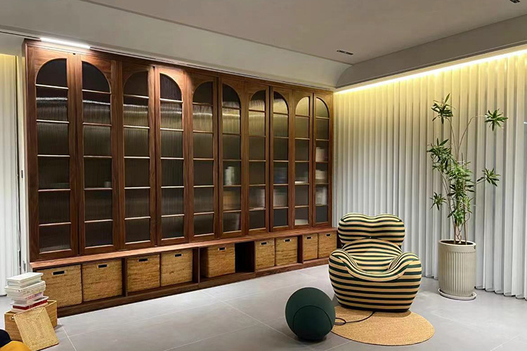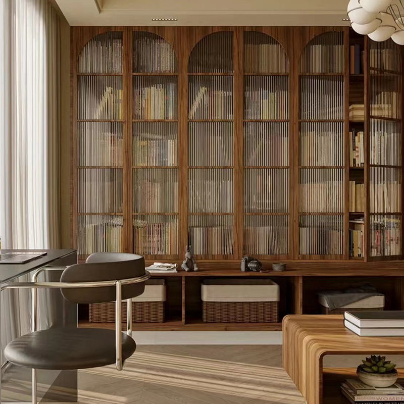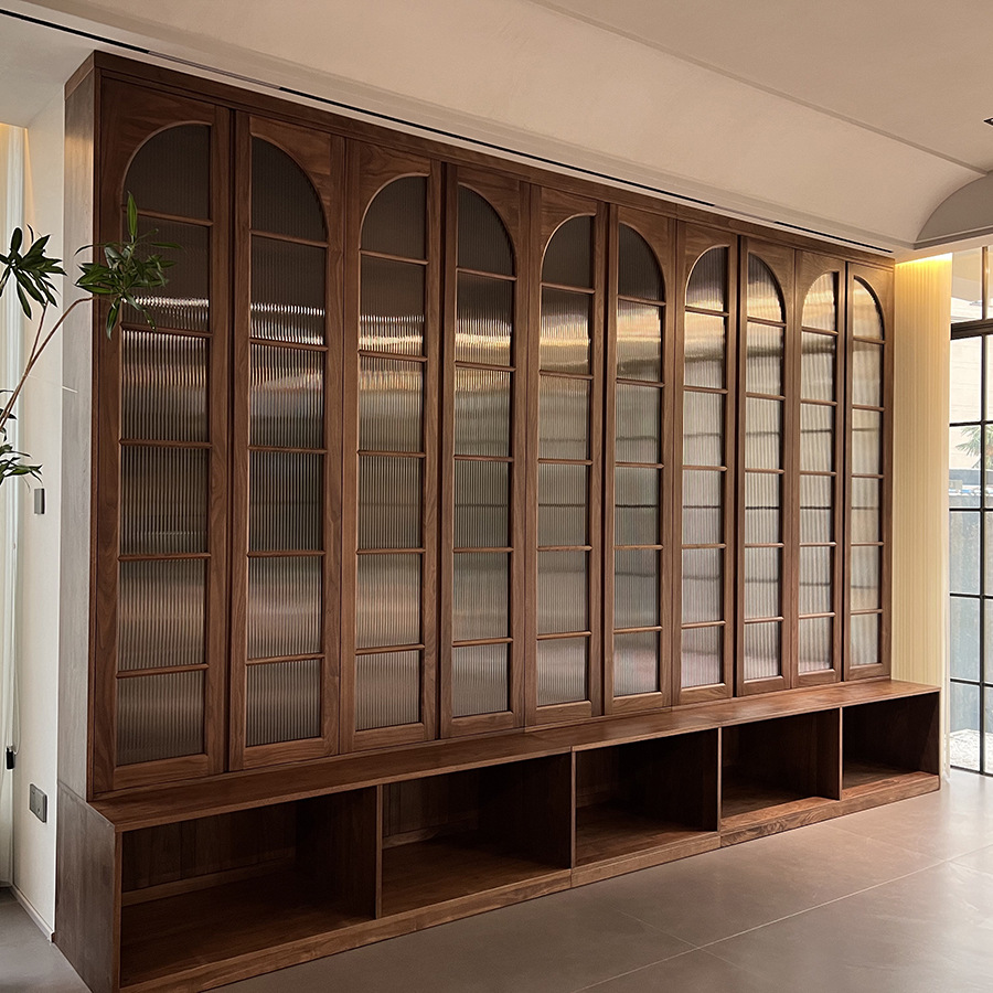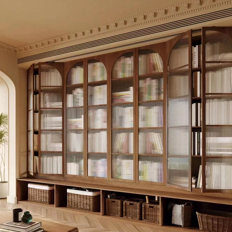 Bắc Mỹ Kệ Sách Gỗ Anh Đào Gỗ óc chó đen Tủ sách gỗ nguyên khối phòng khách cửa kính Tủ sách lớn Nhật Bản tầng đầy đủ tủ tường
