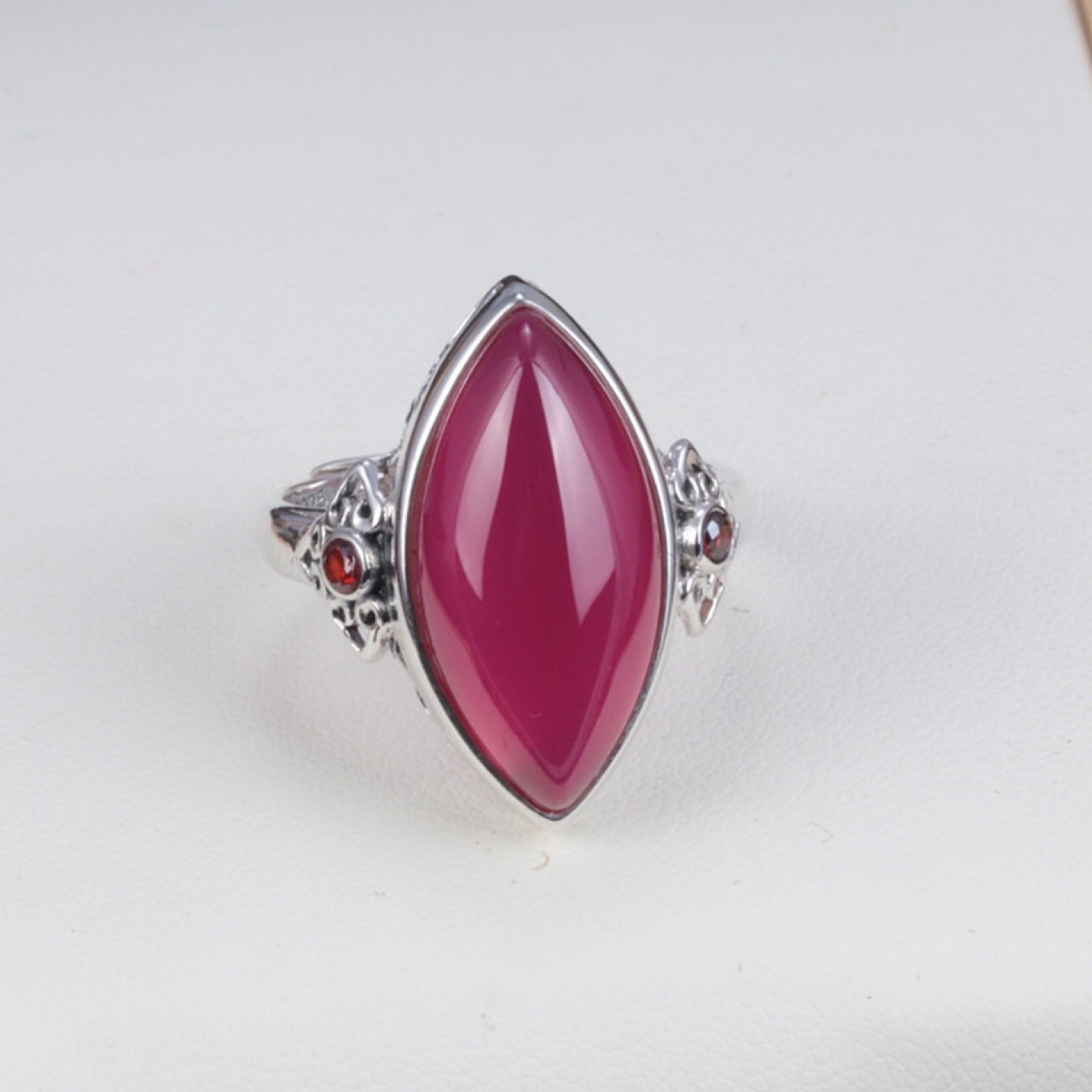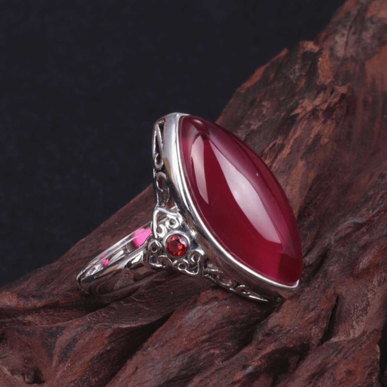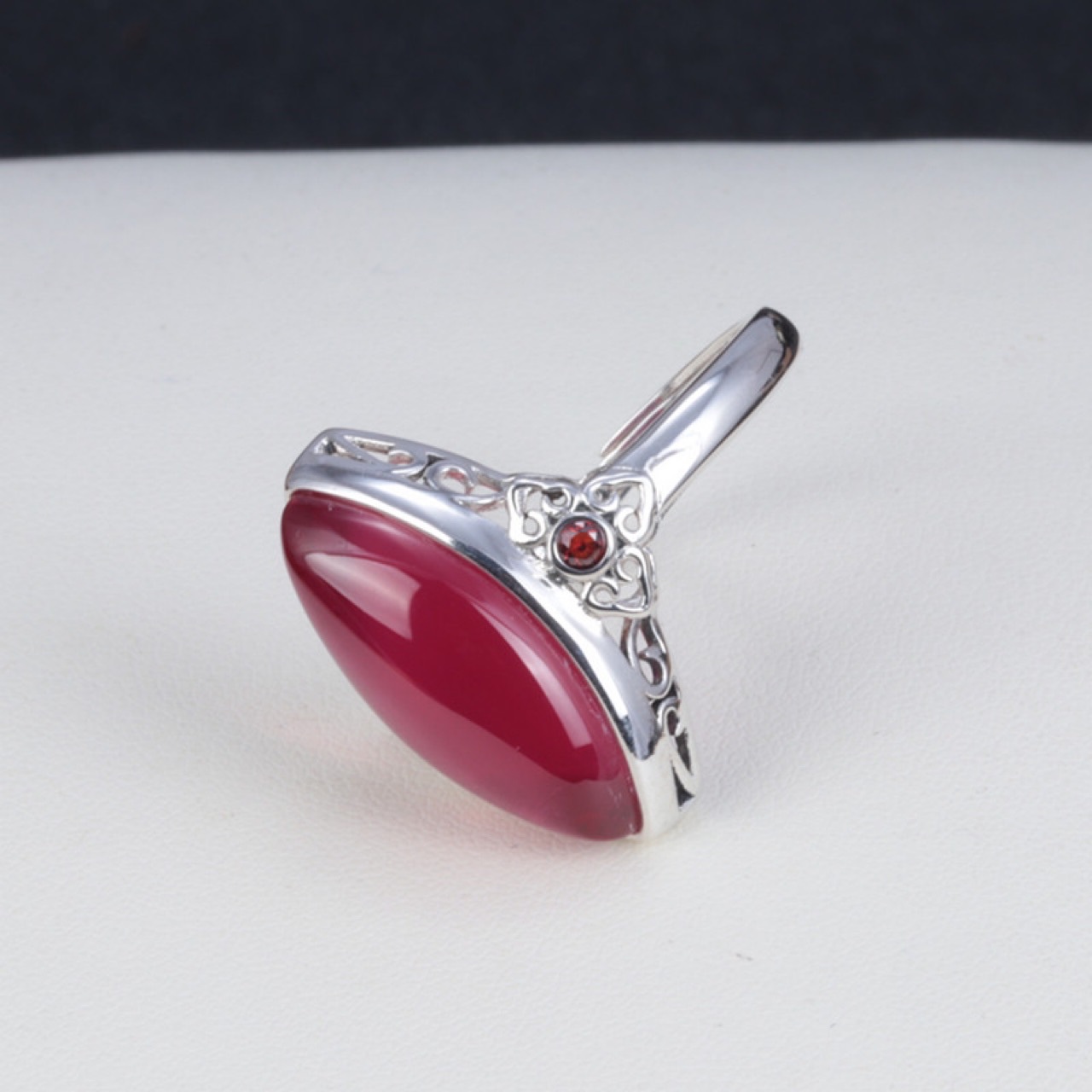 Bạc S925 Lựu Đỏ Nhẫn Nữ Bạc Thái Retro Phong Cách Dân Tộc Đá Quý Cá Tính Không Khí Chỉ Số Nhẫn
