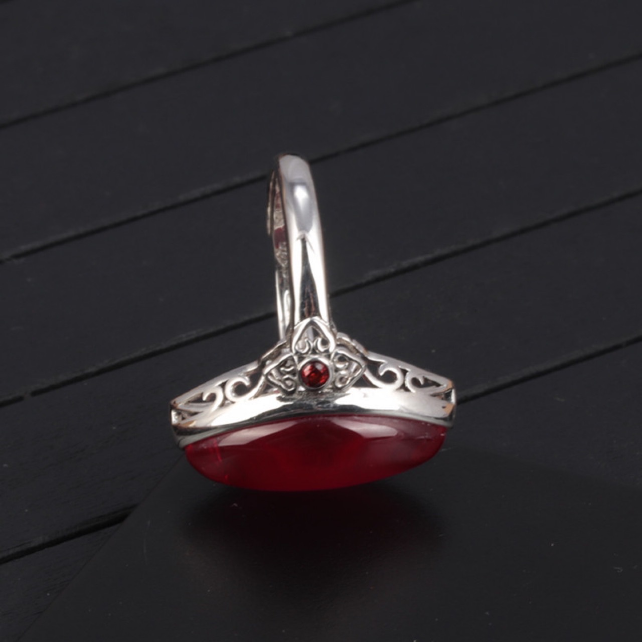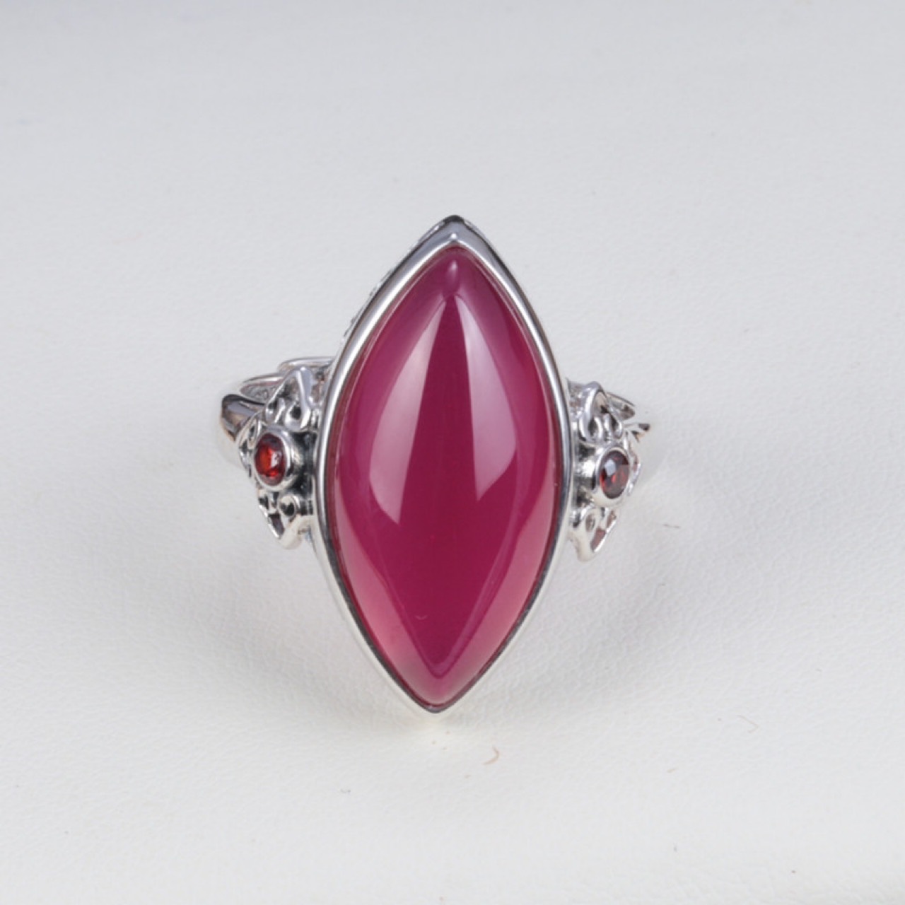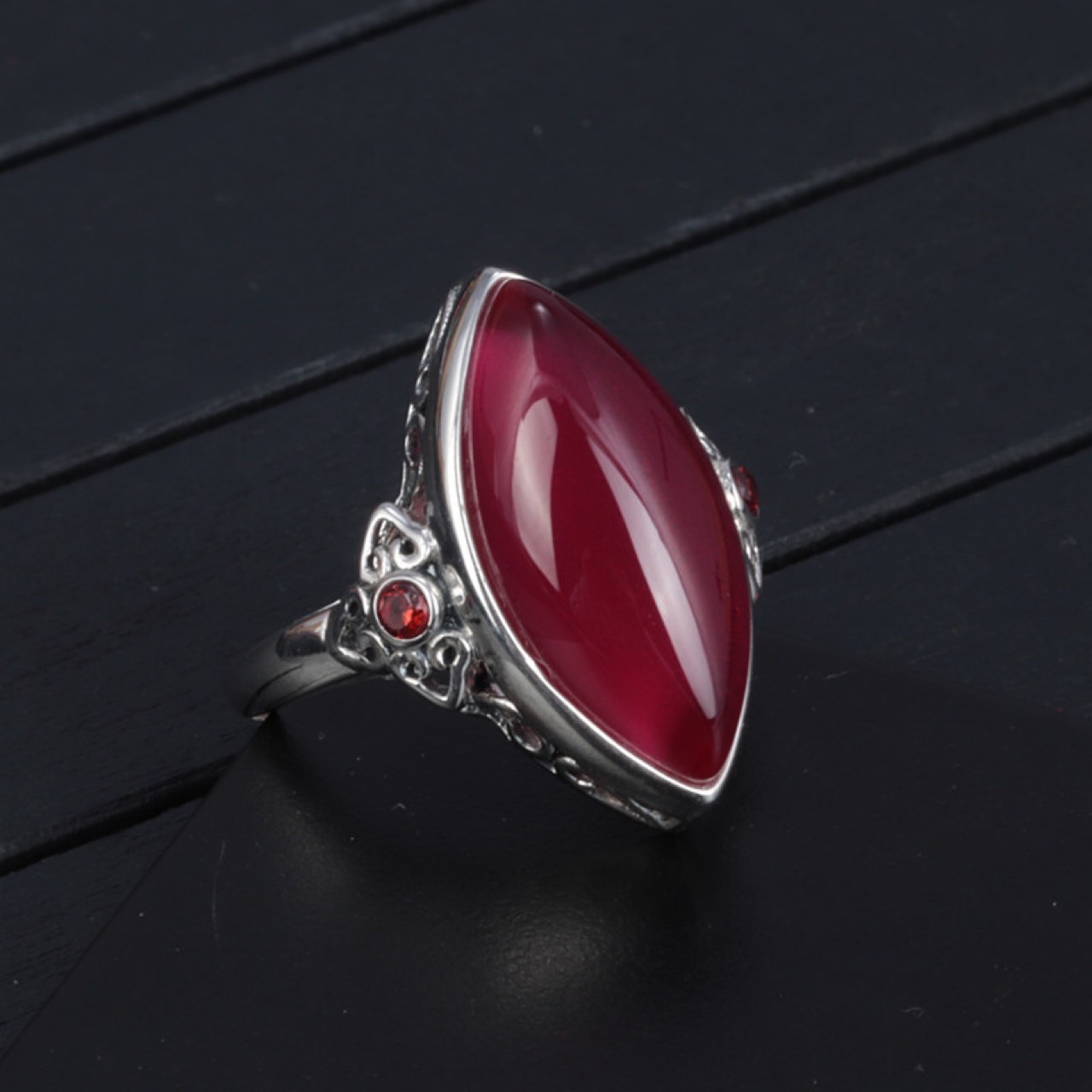 Bạc S925 Lựu Đỏ Nhẫn Nữ Bạc Thái Retro Phong Cách Dân Tộc Đá Quý Cá Tính Không Khí Chỉ Số Nhẫn