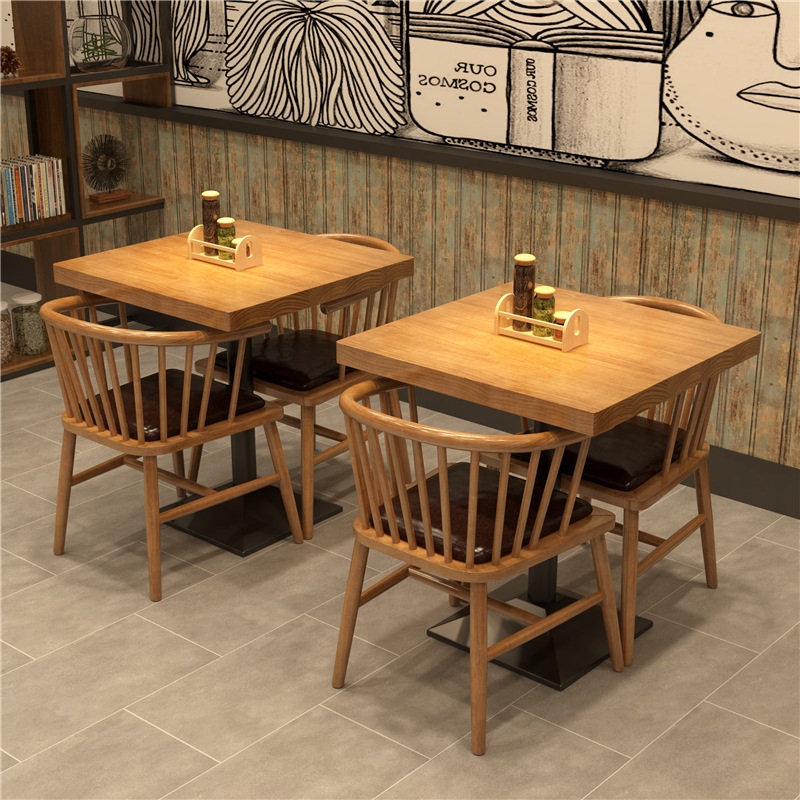 Bada hiện đại, đơn giản, bàn ăn gỗ nguyên khối, cửa hàng nổi tiếng internet, bàn ghế kết hợp, quán trà sữa, quán cà phê, bàn ghế giải trí