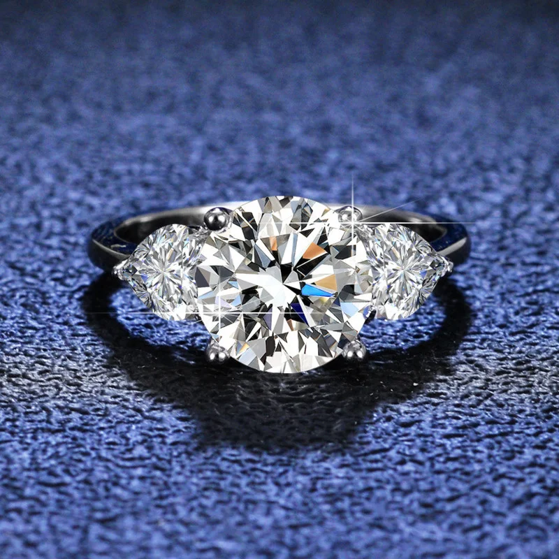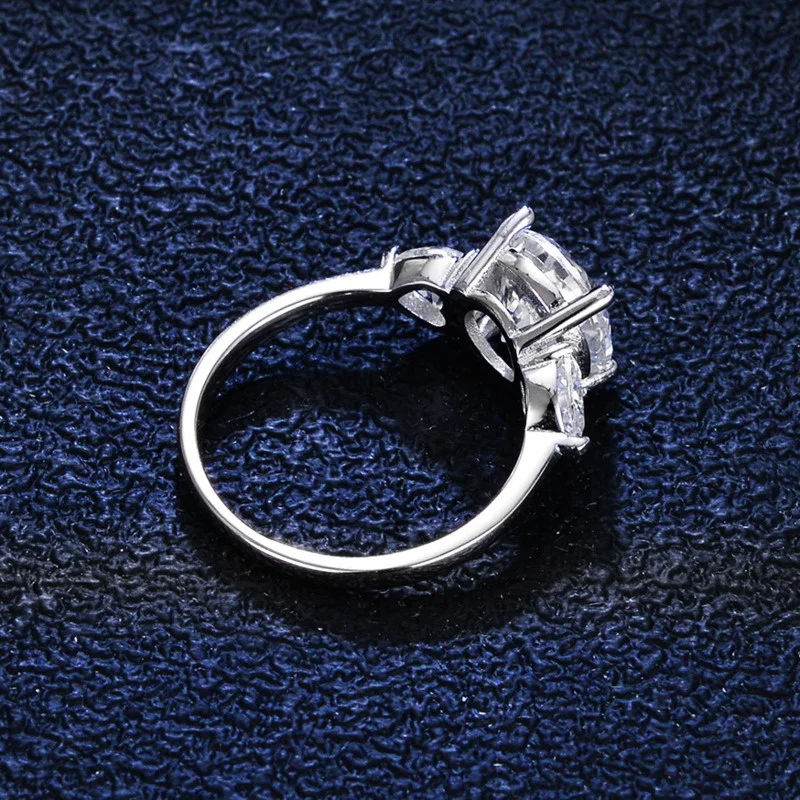 Main stone: 9mm, 3 carat moissanite with certificate, can pass the diamond test