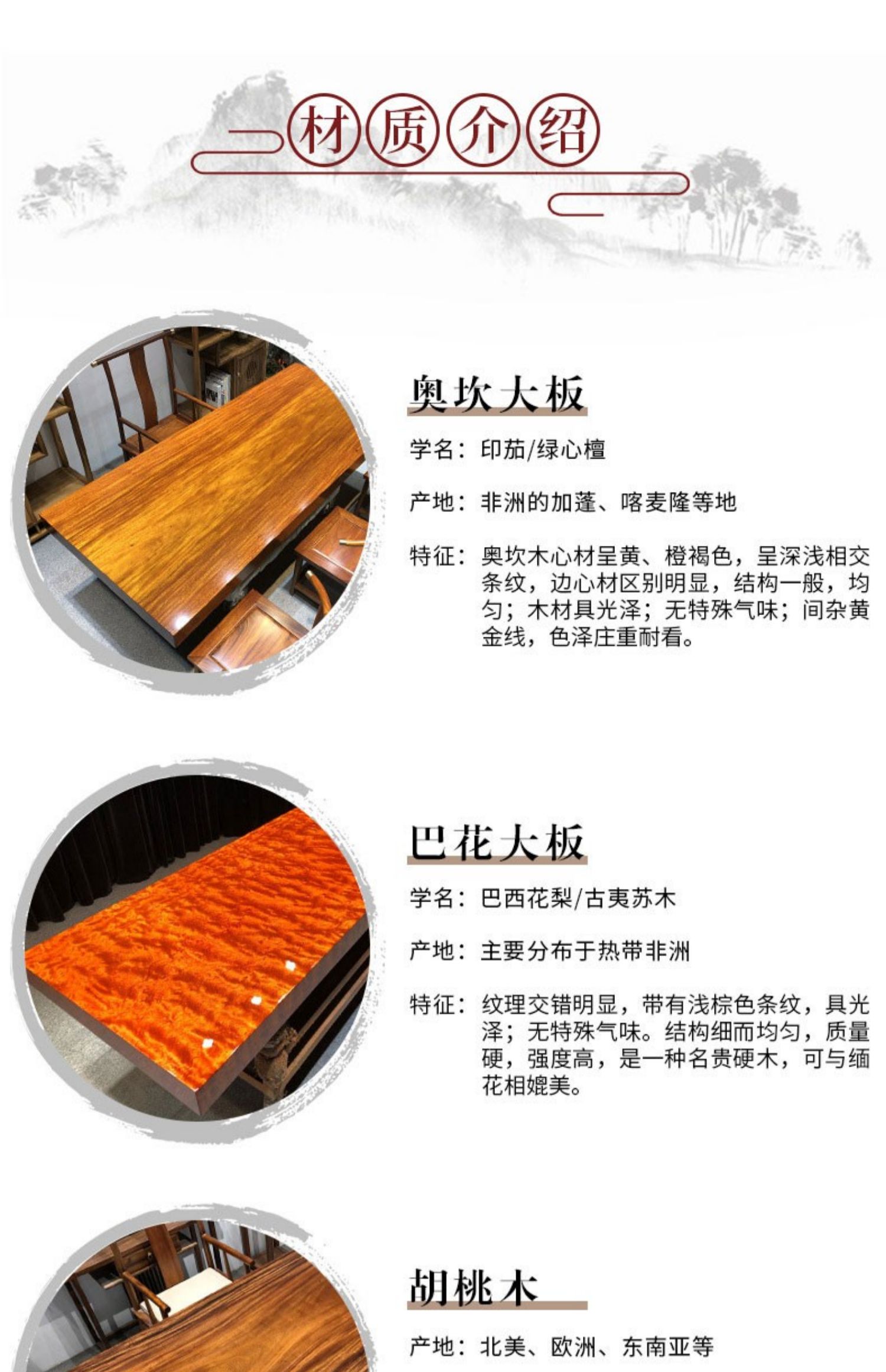 Bahua gỗ rắn gỗ tròn bảng lớn bàn trà bảng toàn bộ bảng Okan gỗ hồng sắc bàn trà gỗ óc chó bàn ăn gỗ mun bàn làm việc bằng gỗ gụ