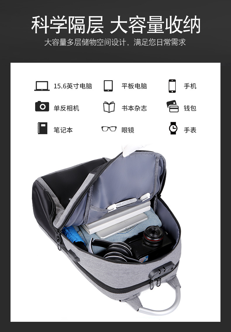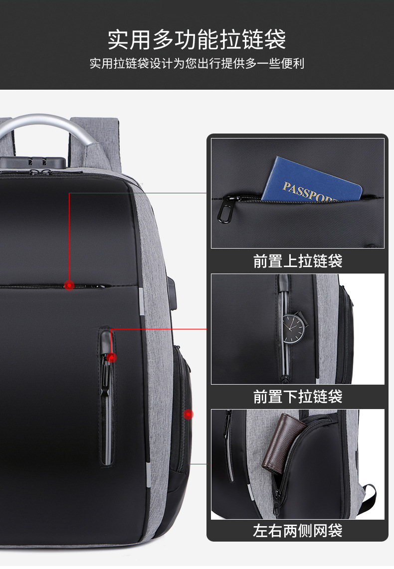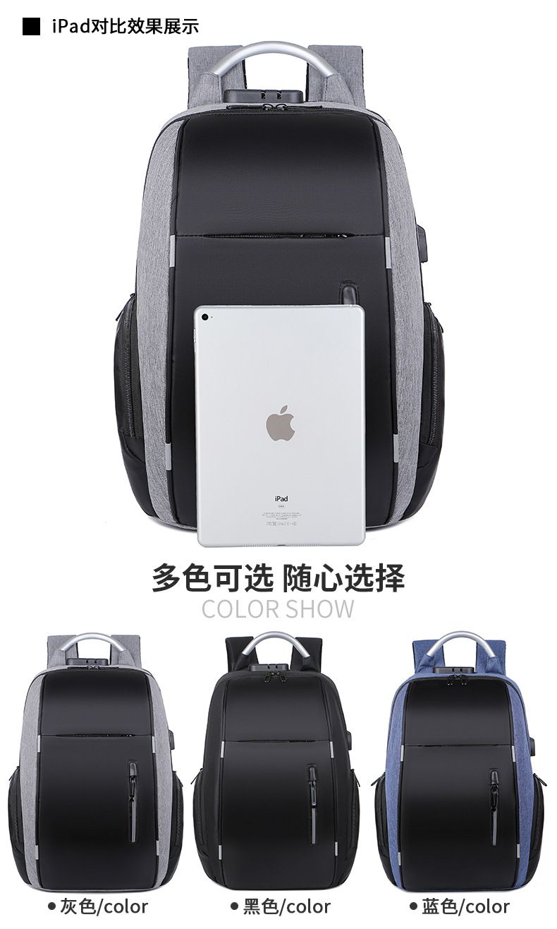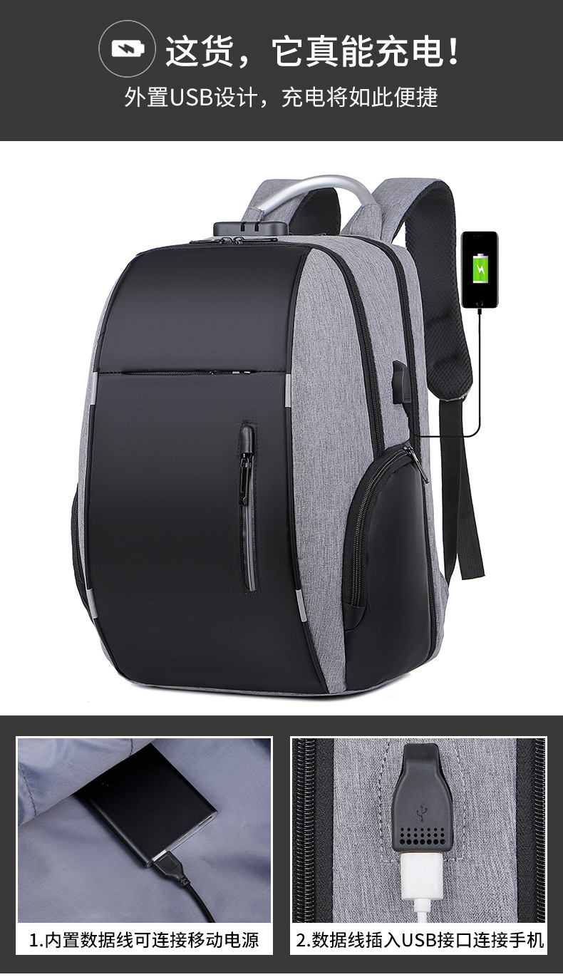 | 商务双肩包 男士新款防盗密码锁usb充电立体质感电竞双肩背包 |