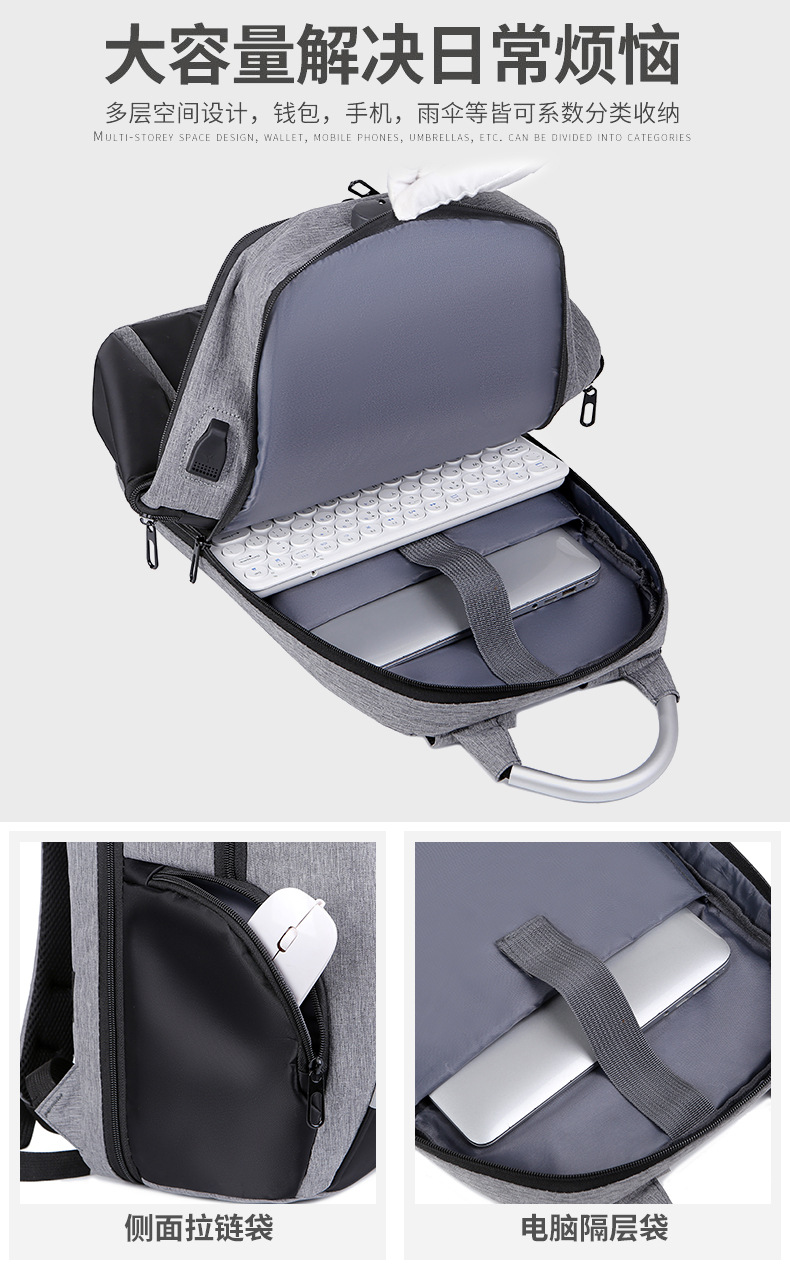 | 跨境2022新款男士双肩包大容量usb充电背包印logo商务休闲电脑包 |