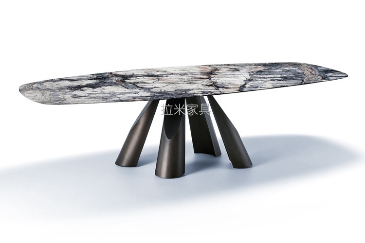 北欧岩板餐桌台脚旋转伸缩火锅桌腿不锈钢桌架轻奢铁艺茶几脚H025