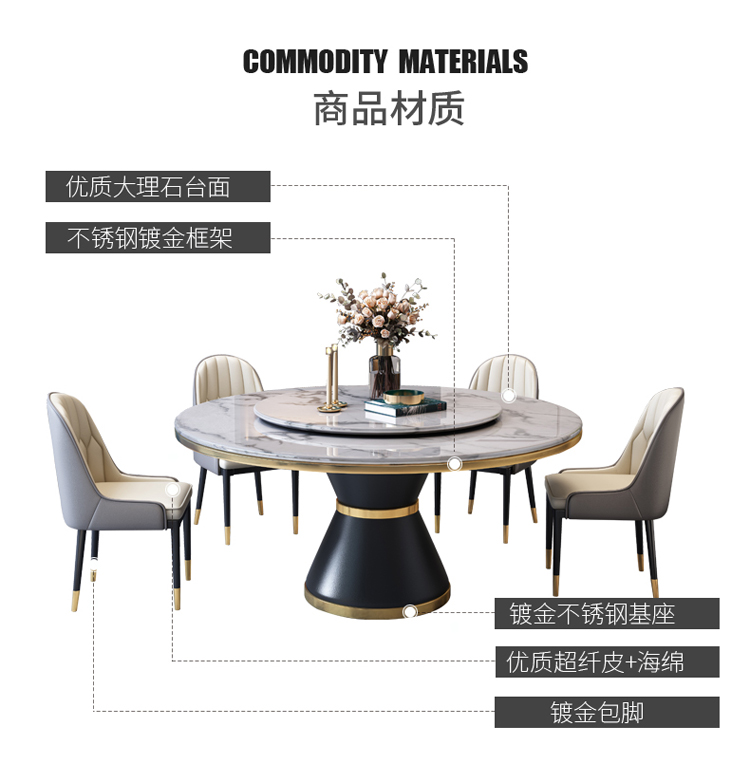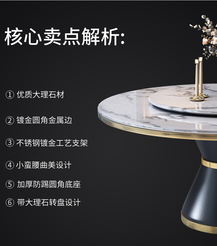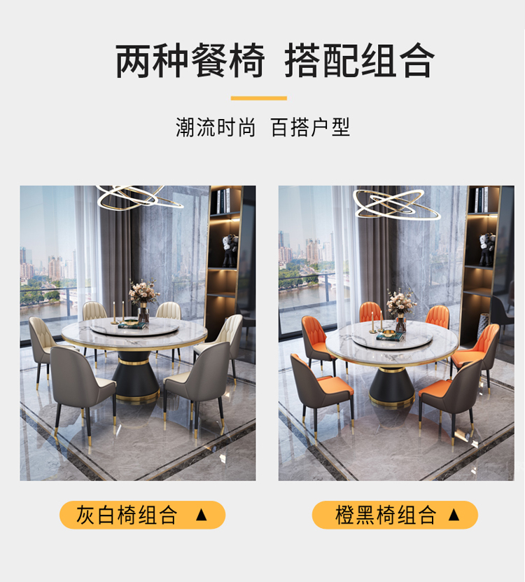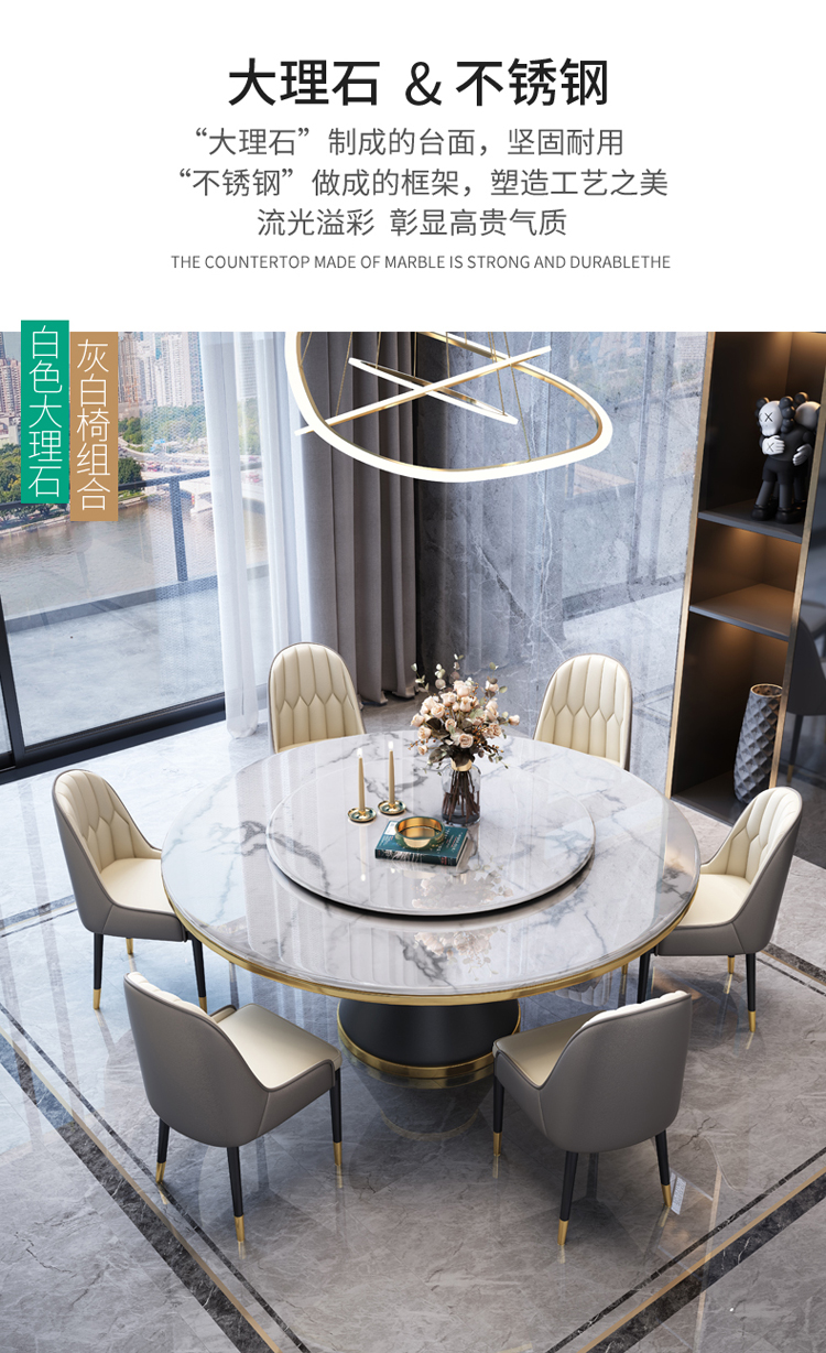 Bàn ăn bằng đá cẩm thạch sang trọng nhẹ nhàng hiện đại kết hợp bàn tròn Bàn ăn bằng đá tối giản kiểu Ý Bàn ăn hộ gia đình căn hộ nhỏ với bàn xoay – Bàn ăn nhập khẩu cao cấp