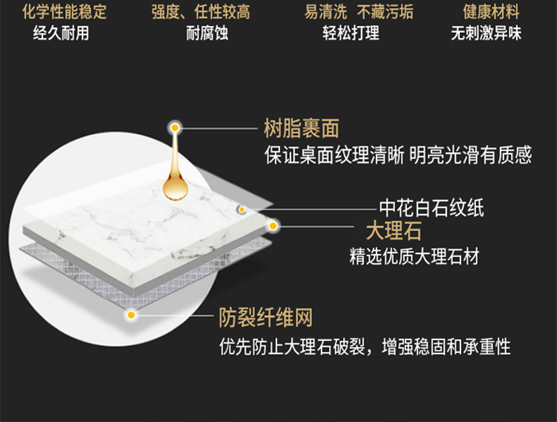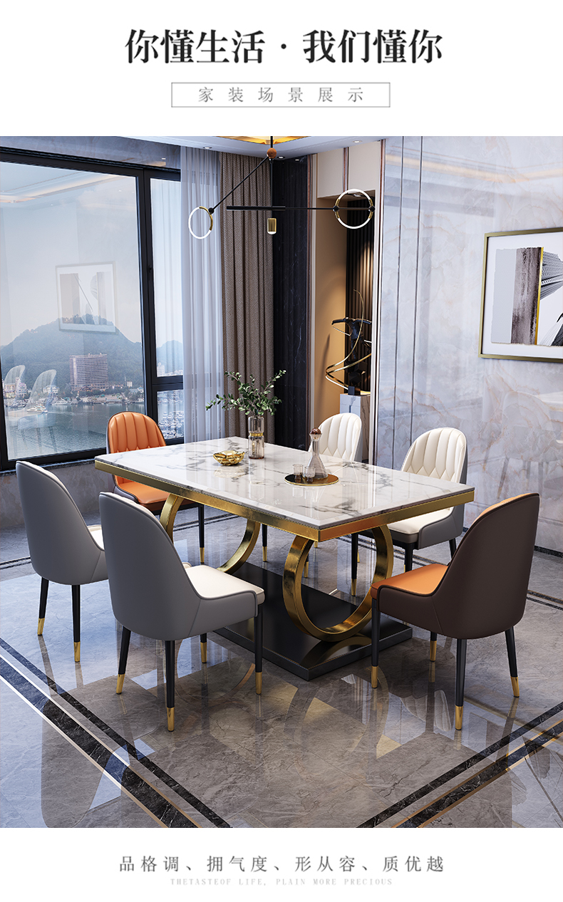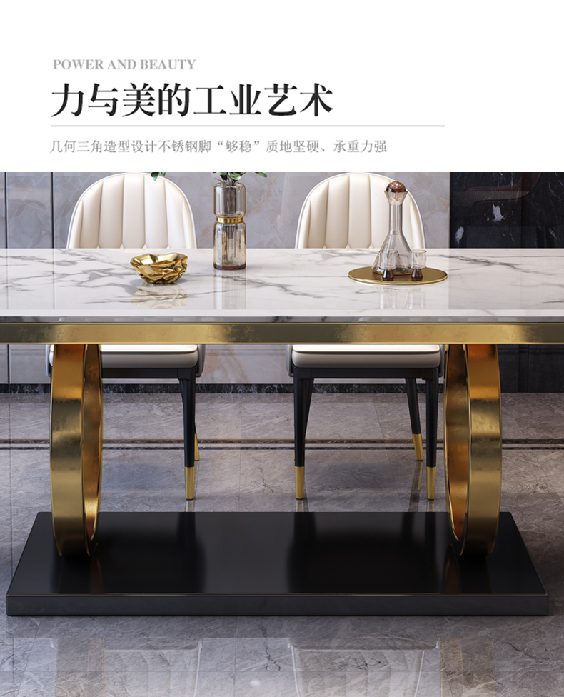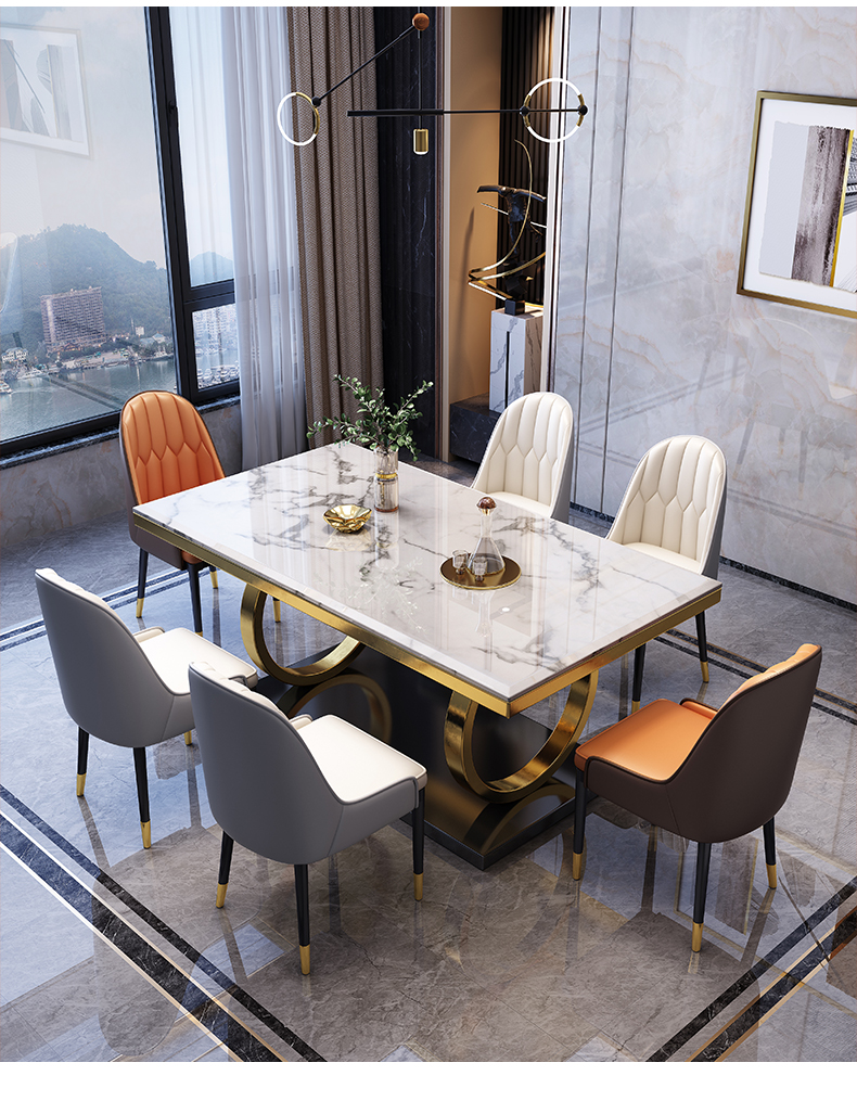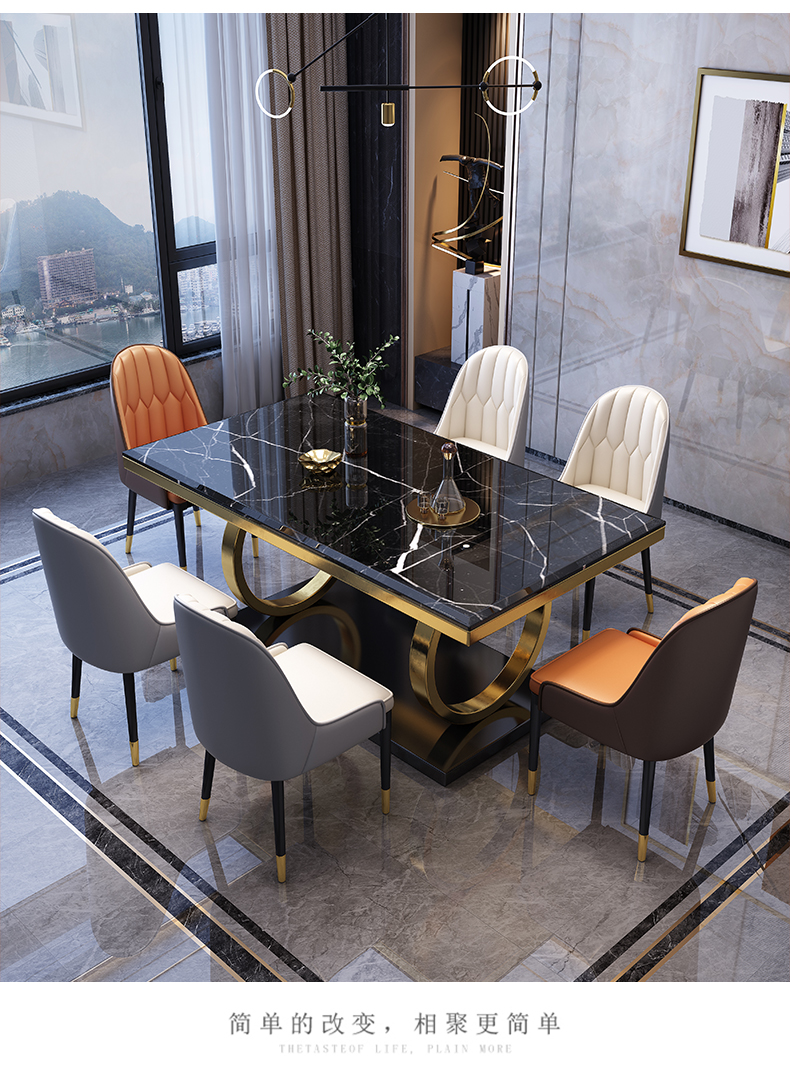 Bàn ăn bằng đá cẩm thạch sang trọng nhẹ và ghế kết hợp hiện đại tối giản hình chữ nhật vàng gia dụng nhỏ Bàn ăn bằng đá phiến cao cấp
