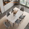 Bàn ăn bằng đá cẩm thạch sang trọng nhẹ và ghế kết hợp hiện đại tối giản hình chữ nhật vàng gia dụng nhỏ Bàn ăn bằng đá phiến cao cấp – Bàn ăn nhập khẩu cao cấp
