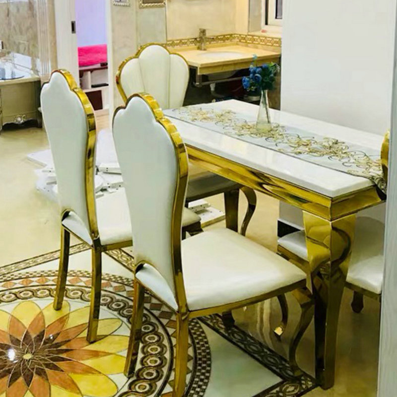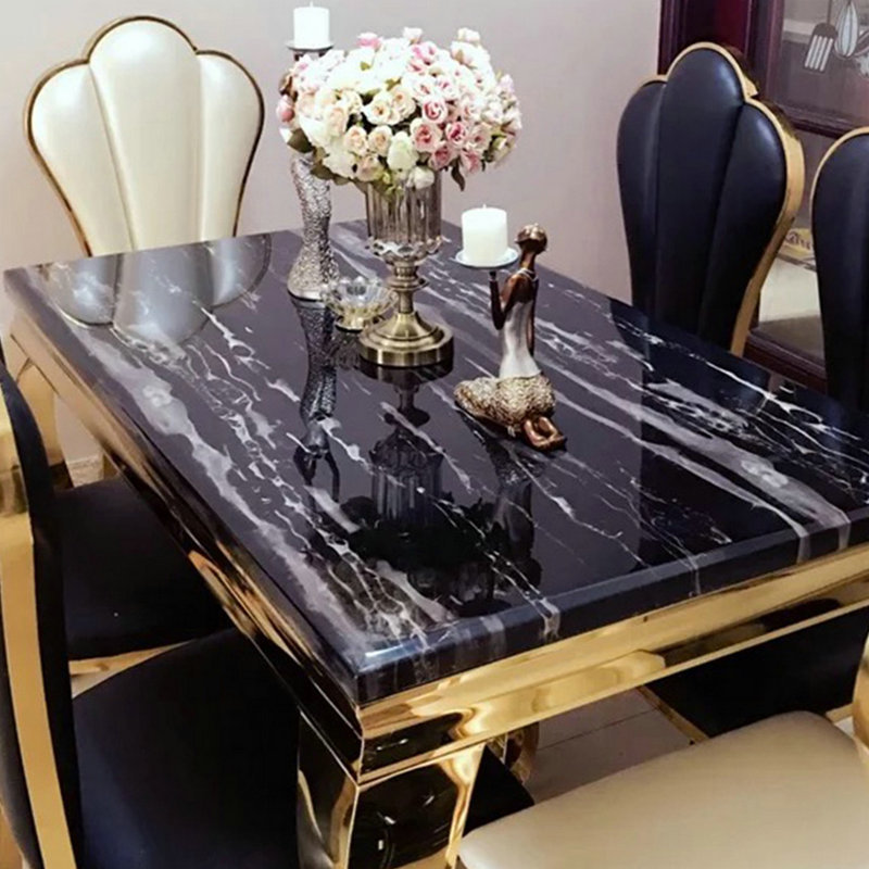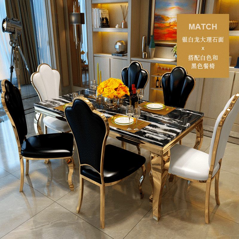 Bàn ăn bằng đá cẩm thạch theo phong cách châu Âu Bàn ăn tối giản hiện đại và ghế kết hợp bàn ăn gia đình hình chữ nhật nhỏ sang trọng nhẹ