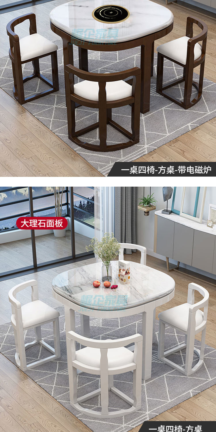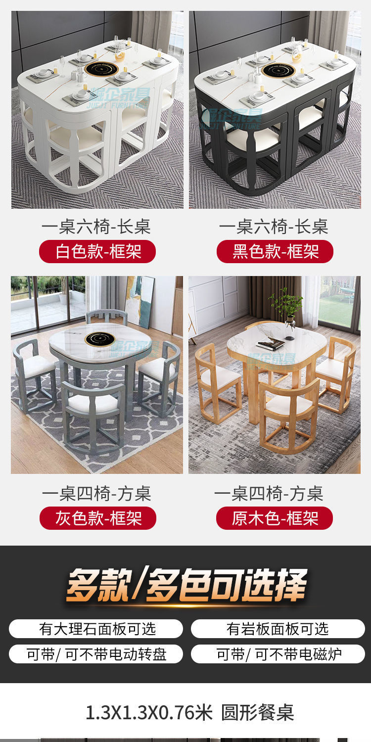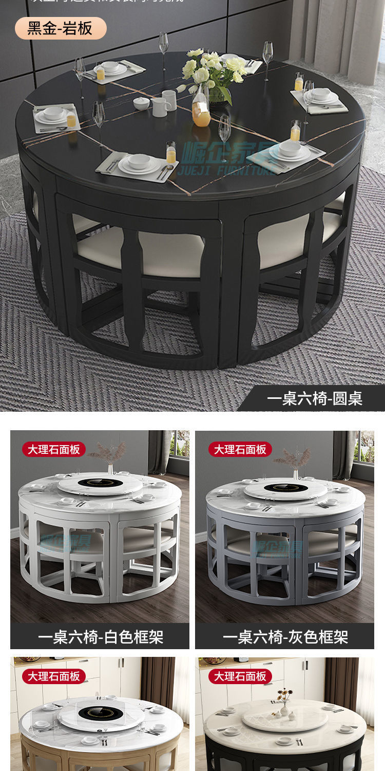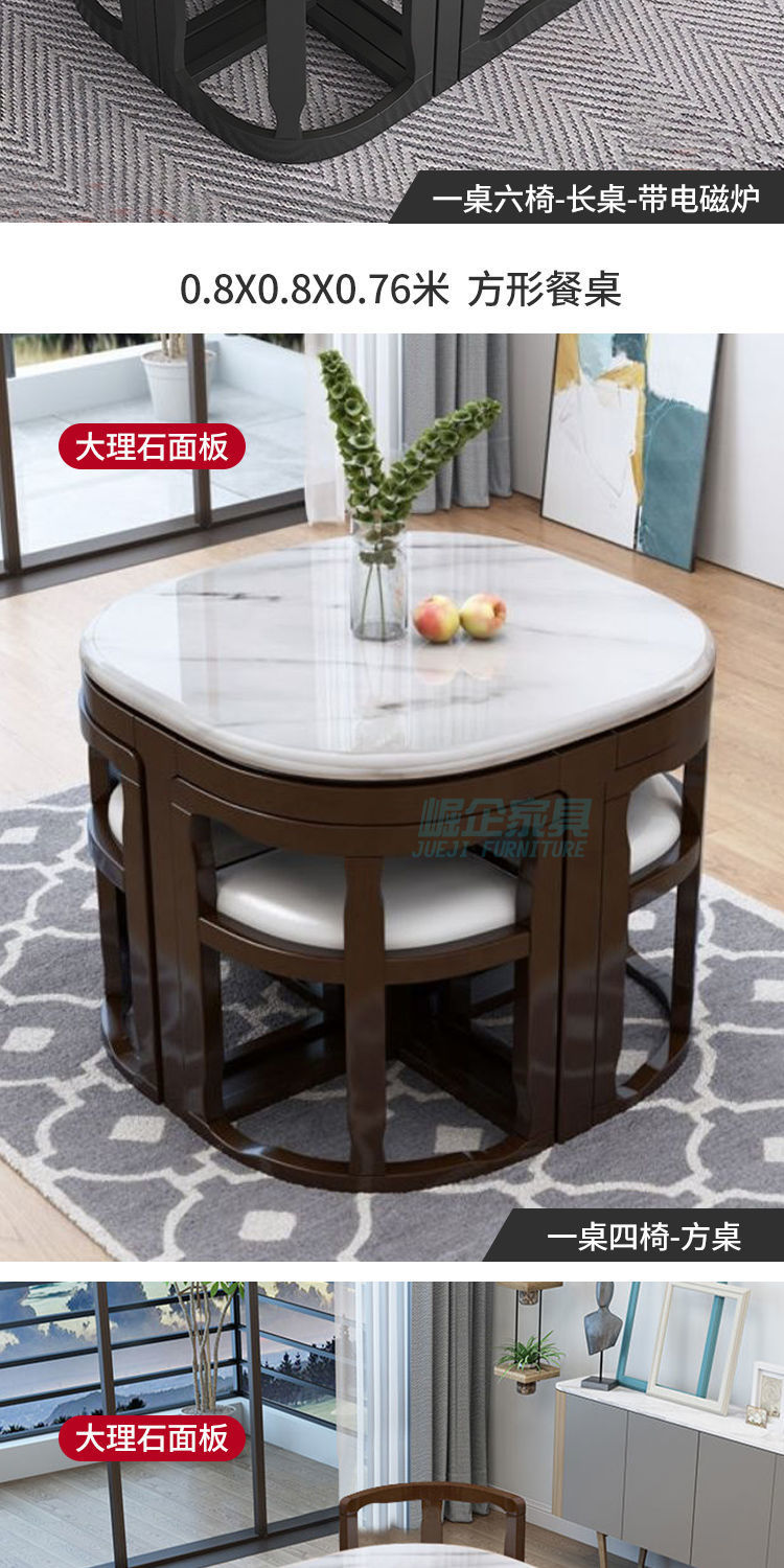 Bàn ăn bằng đá cẩm thạch và ghế kết hợp Bàn ăn gia đình bằng kính thiên văn đơn giản hiện đại Đồ nội thất gia đình nhỏ Bàn tròn gấp bằng gỗ nguyên khối