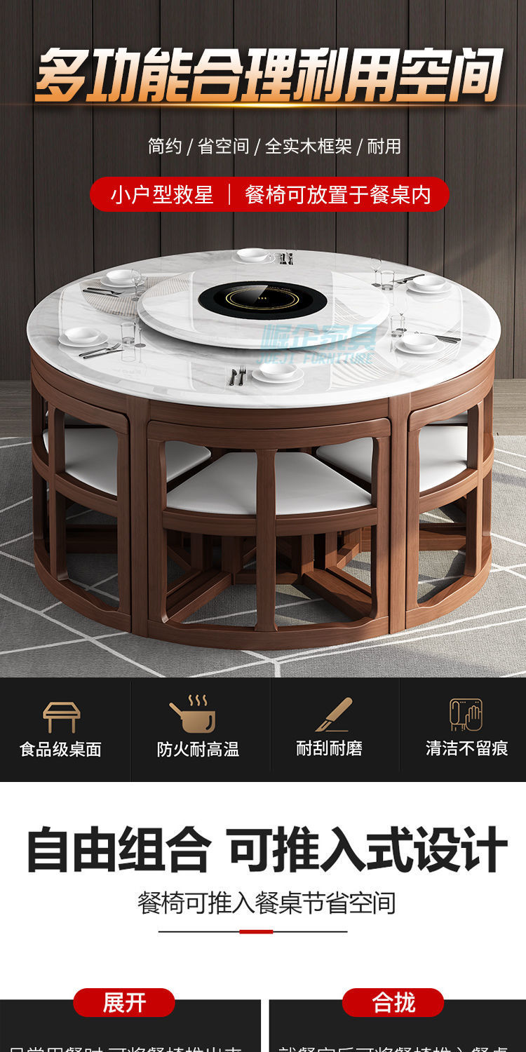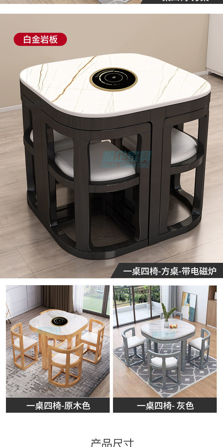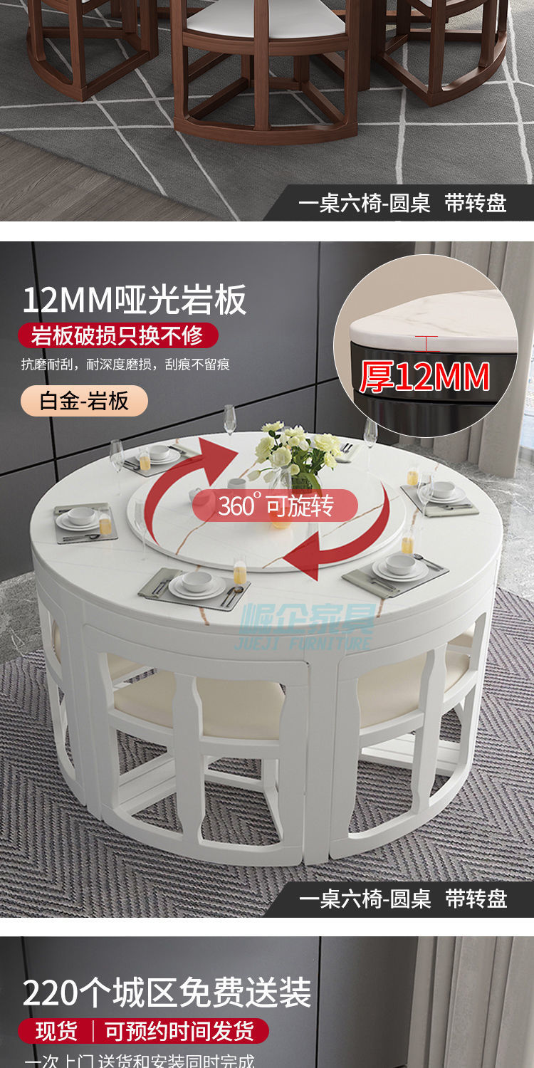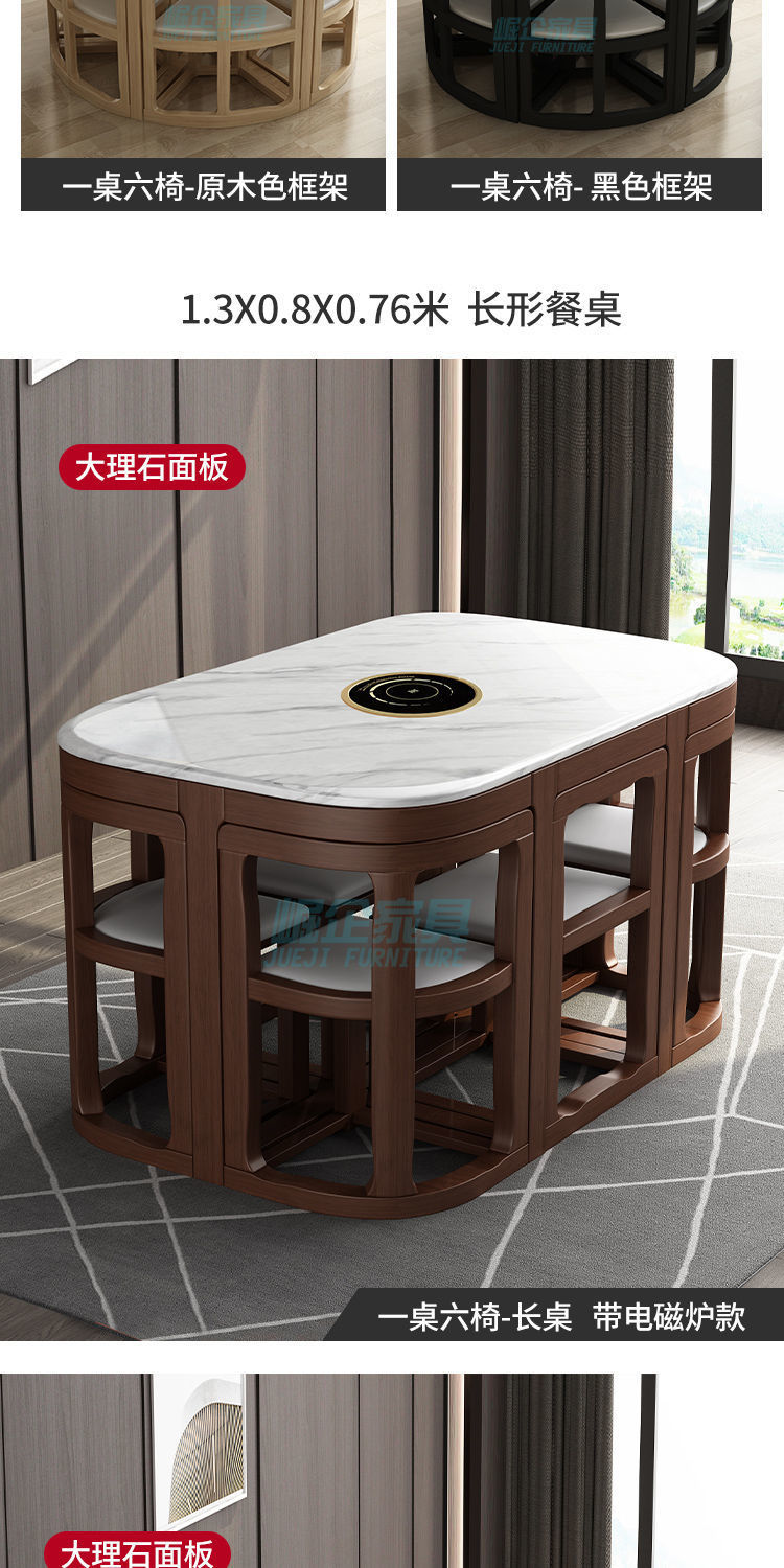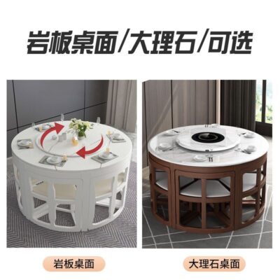 Bàn ăn bằng đá cẩm thạch và ghế kết hợp Bàn ăn gia đình bằng kính thiên văn đơn giản hiện đại Đồ nội thất gia đình nhỏ Bàn tròn gấp bằng gỗ nguyên khối
