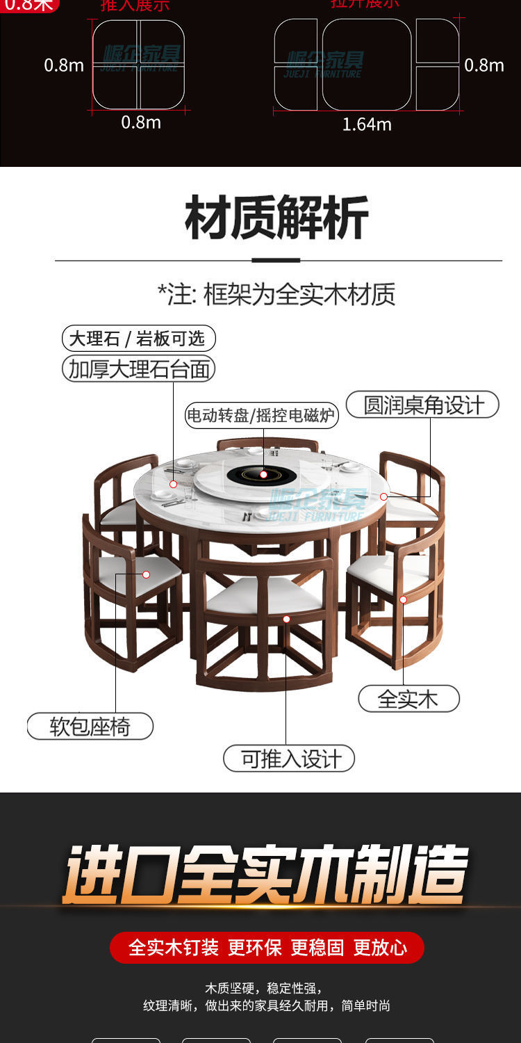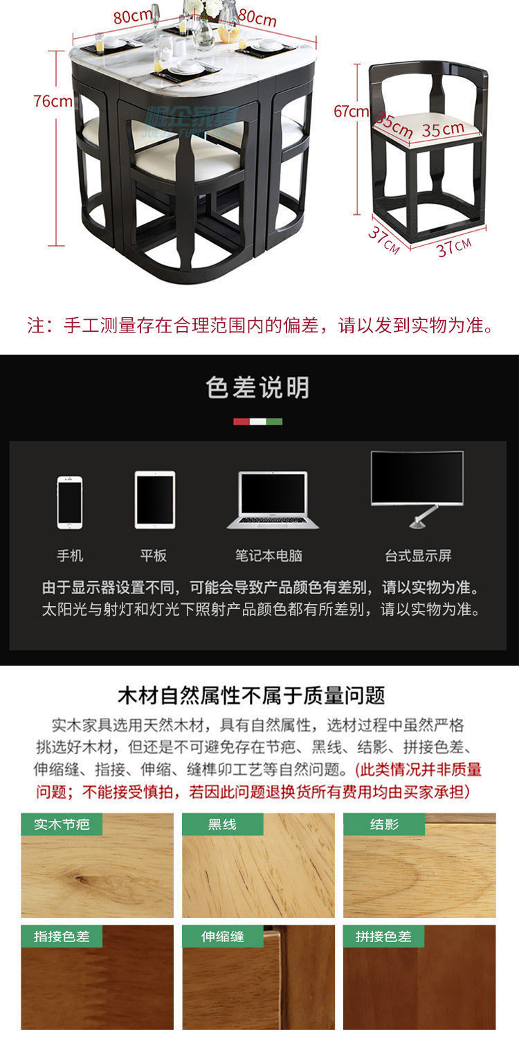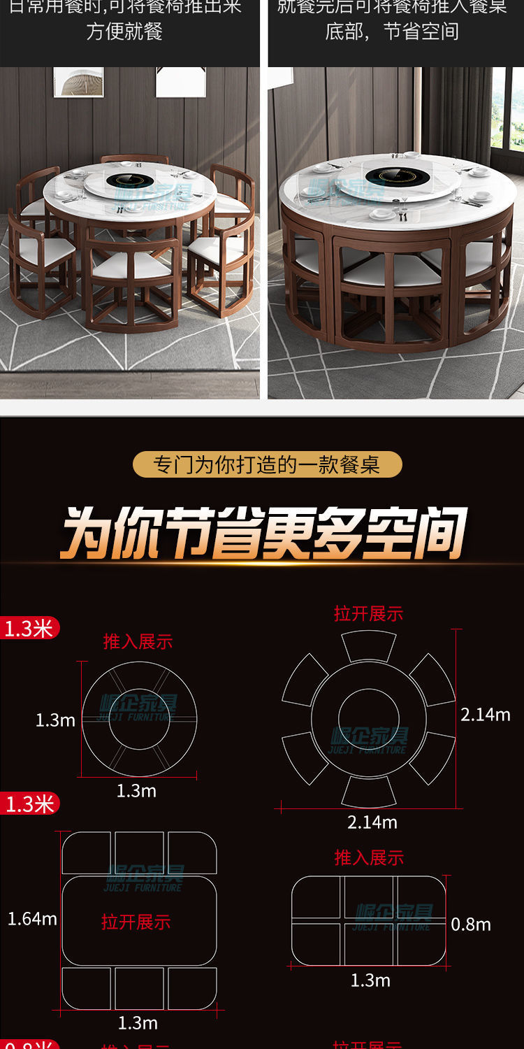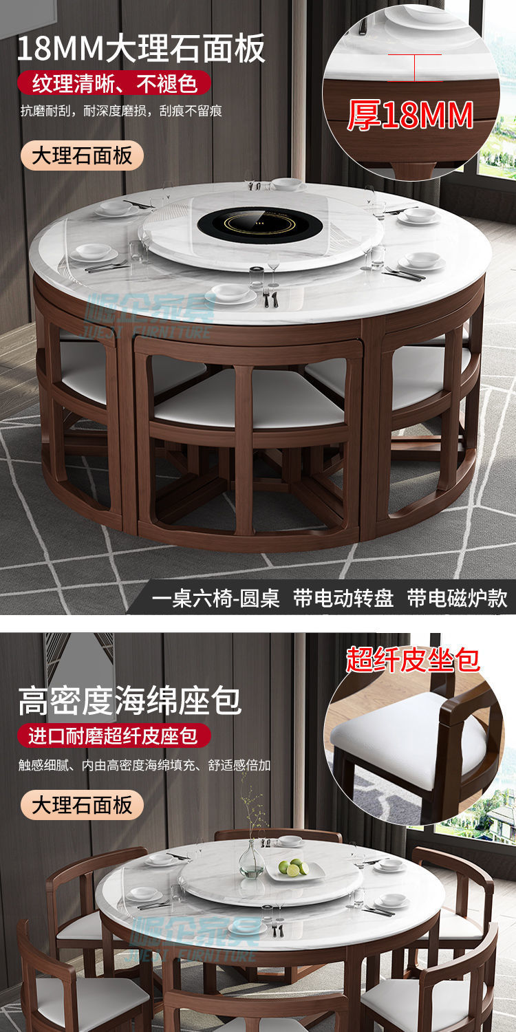 Bàn ăn bằng đá cẩm thạch và ghế kết hợp Bàn ăn gia đình bằng kính thiên văn đơn giản hiện đại Đồ nội thất gia đình nhỏ Bàn tròn gấp bằng gỗ nguyên khối
