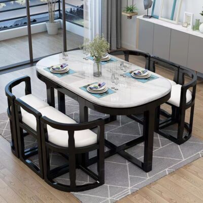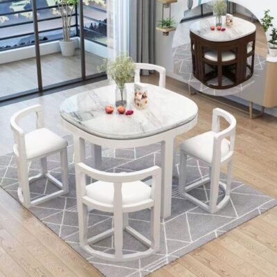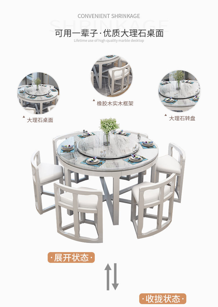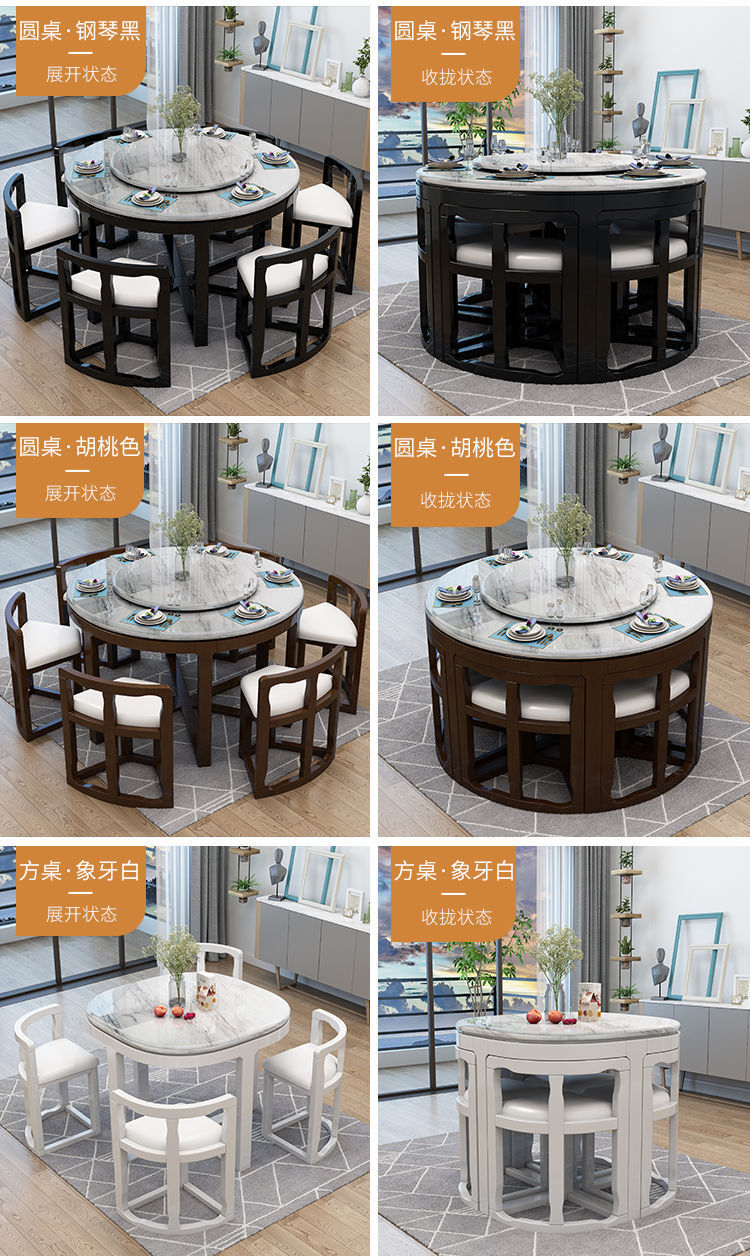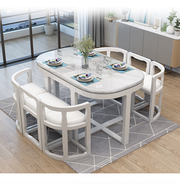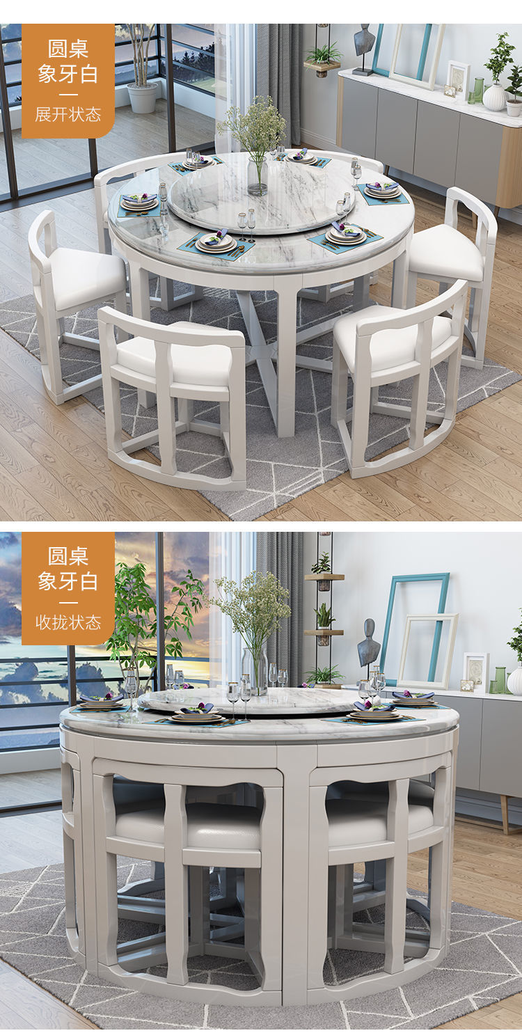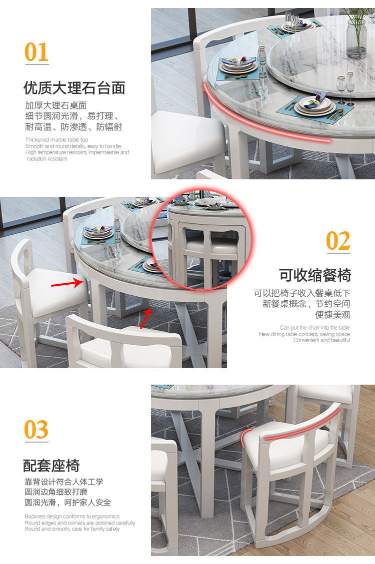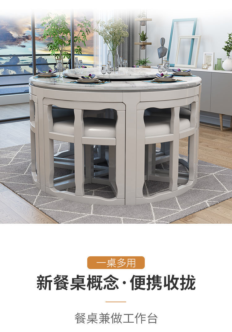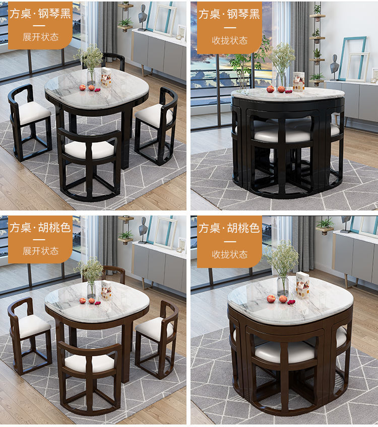 Bàn ăn bằng đá cẩm thạch và ghế kết hợp tất cả bàn ăn bằng gỗ nguyên khối nhà căn hộ nhỏ đa chức năng bàn vô hình bàn tròn nhà màu đỏ
