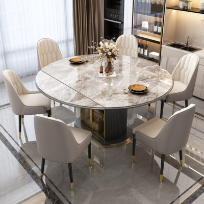 Bàn ăn bằng đá phiến có thể thu vào biến bàn tròn nhà căn hộ nhỏ bằng gỗ nguyên khối gấp gọn lưu trữ hiện đại tối giản Đẹp bàn ăn sang trọng