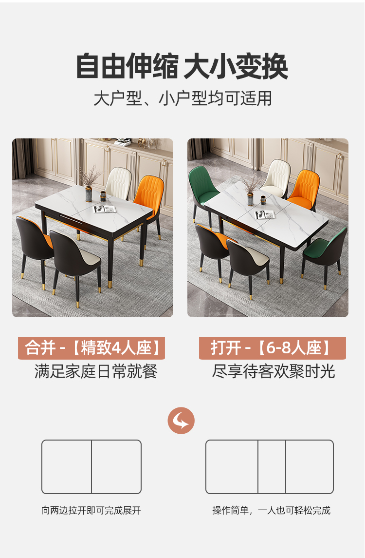 Bàn ăn bằng đá phiến có thể thu vào sang trọng – Bàn ăn nhập khẩu cao cấp