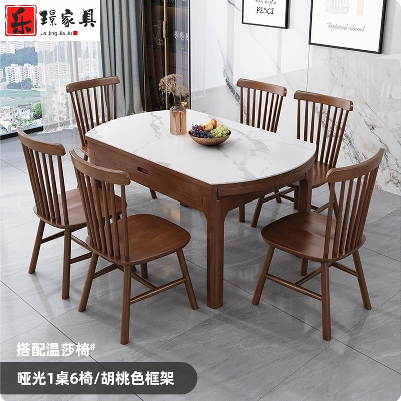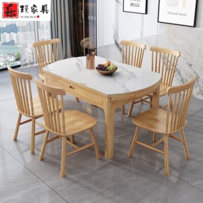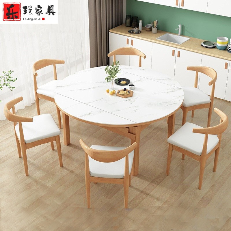 Bàn ăn bằng đá phiến gỗ nguyên khối Bắc Âu đơn giản có thể gập lại Bàn ghế ăn bằng kính thiên văn kết hợp bàn ghế ăn hình vuông đến tròn trong gia đình