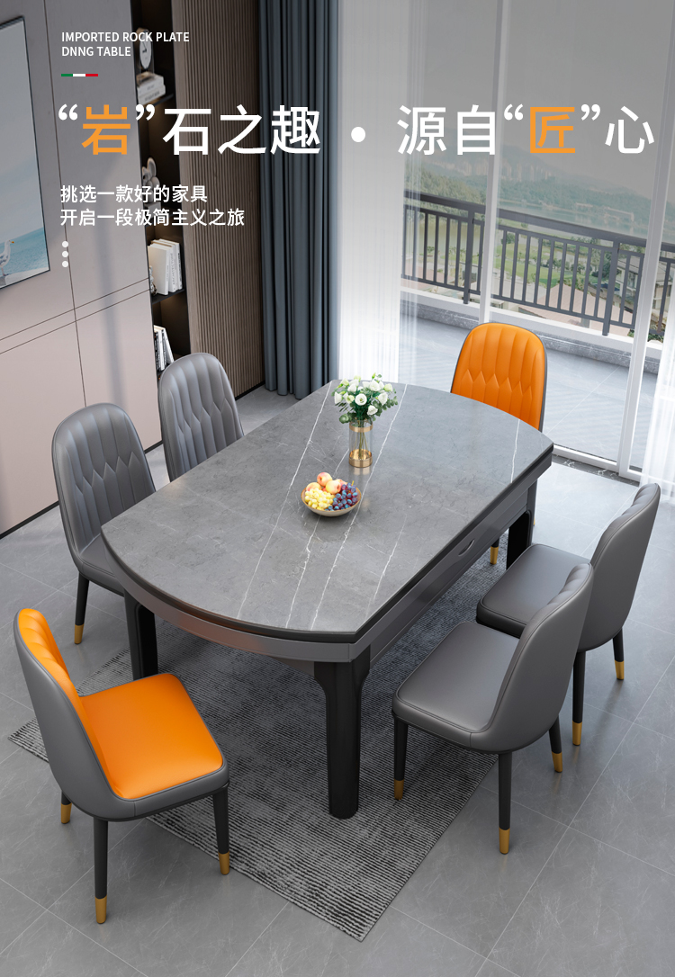 Bàn ăn bằng đá phiến hiện đại tối giản hộ gia đình nhỏ căn hộ nhỏ sáng sủa sang trọng bằng gỗ rắn có thể thu vào bàn ăn và ghế kết hợp bàn tròn có thể thay đổi là sản phẩm nổi bật trong dòng bàn ăn nhập khẩu, thiết kế hiện đại và sang trọng, phù hợp với nhiều không gian nội thất cao cấp.