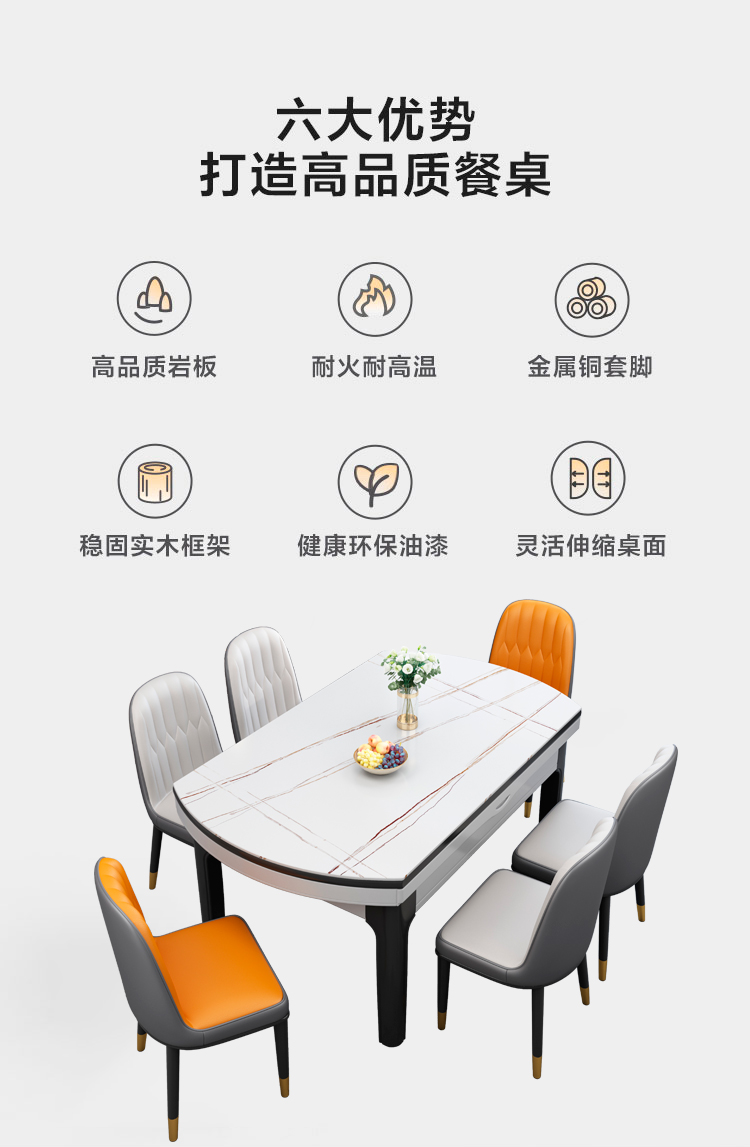 Bàn ăn bằng đá phiến hiện đại tối giản hộ gia đình nhỏ căn hộ nhỏ sáng sủa sang trọng bằng gỗ rắn có thể thu vào bàn ăn và ghế kết hợp bàn tròn có thể thay đổi – Bàn ăn nhập khẩu cao cấp