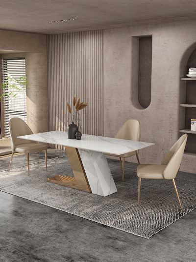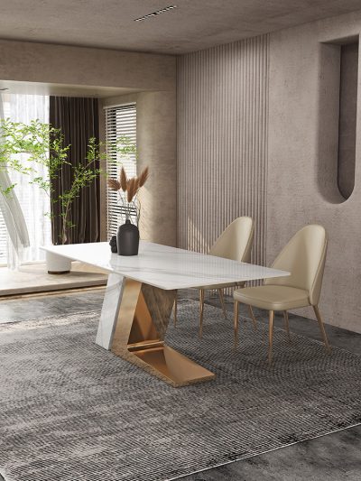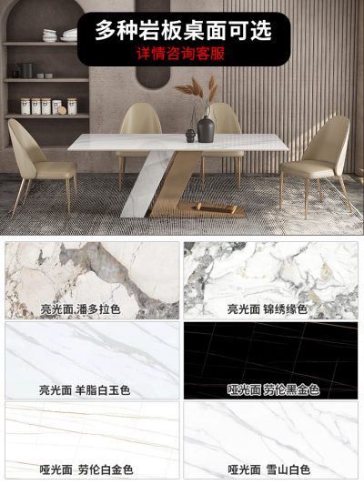 Bàn ăn bằng đá phiến hình chữ nhật nhập khẩu. là sản phẩm nổi bật trong dòng bàn ăn nhập khẩu, thiết kế hiện đại và sang trọng, phù hợp với nhiều không gian nội thất cao cấp.