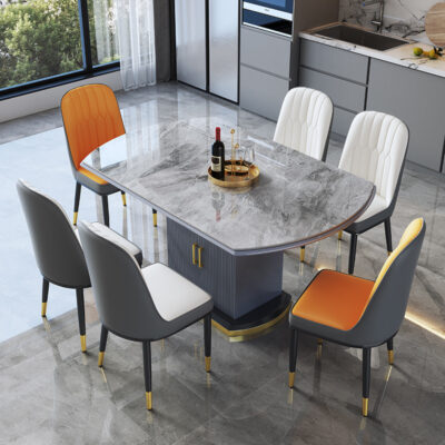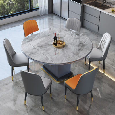 Bàn ăn bằng đá phiến Ý hiện đại đơn giản Bàn ăn gấp bằng kính thiên văn có đèn lưu trữ bếp từ Bàn tròn sang trọng có bàn xoay