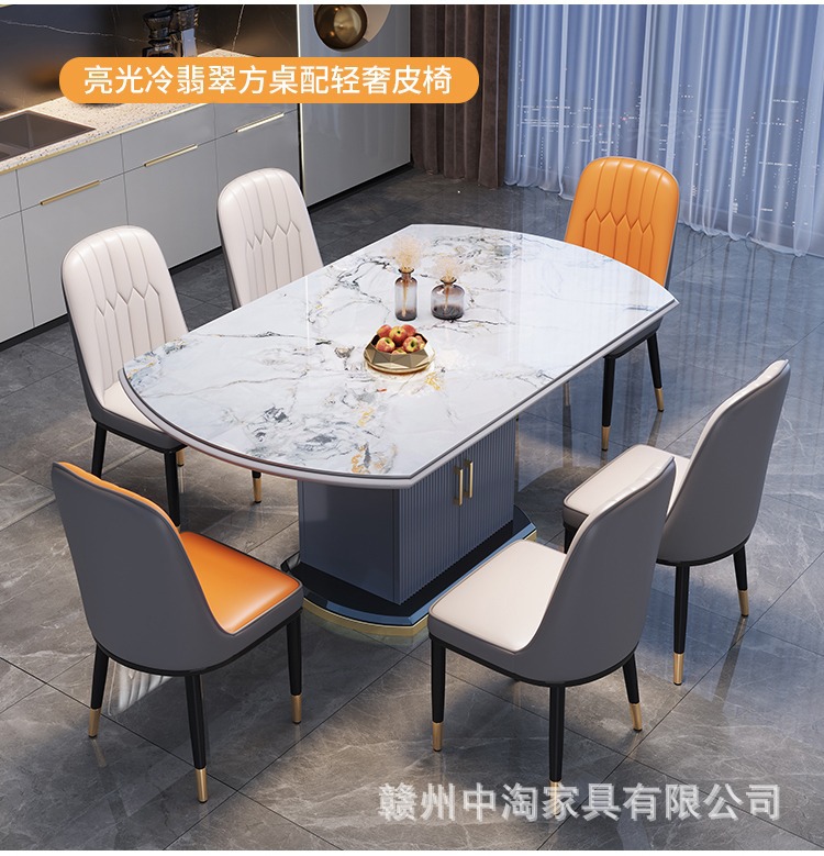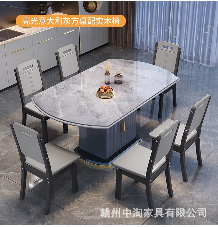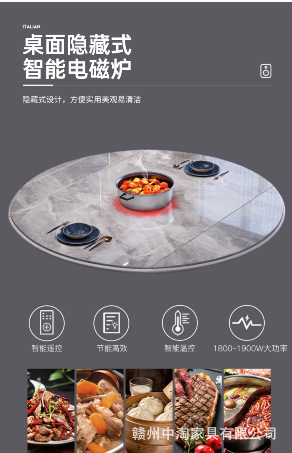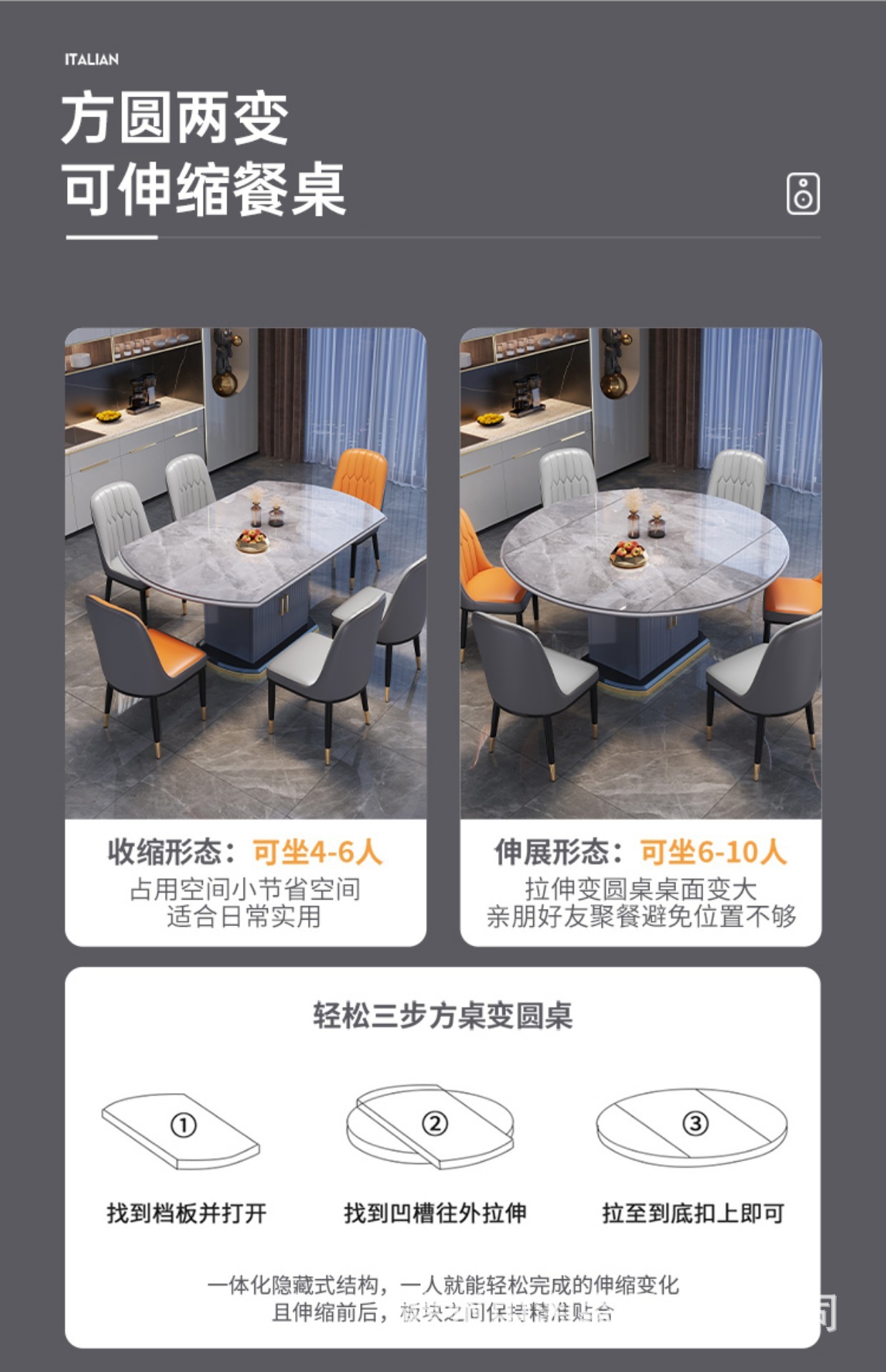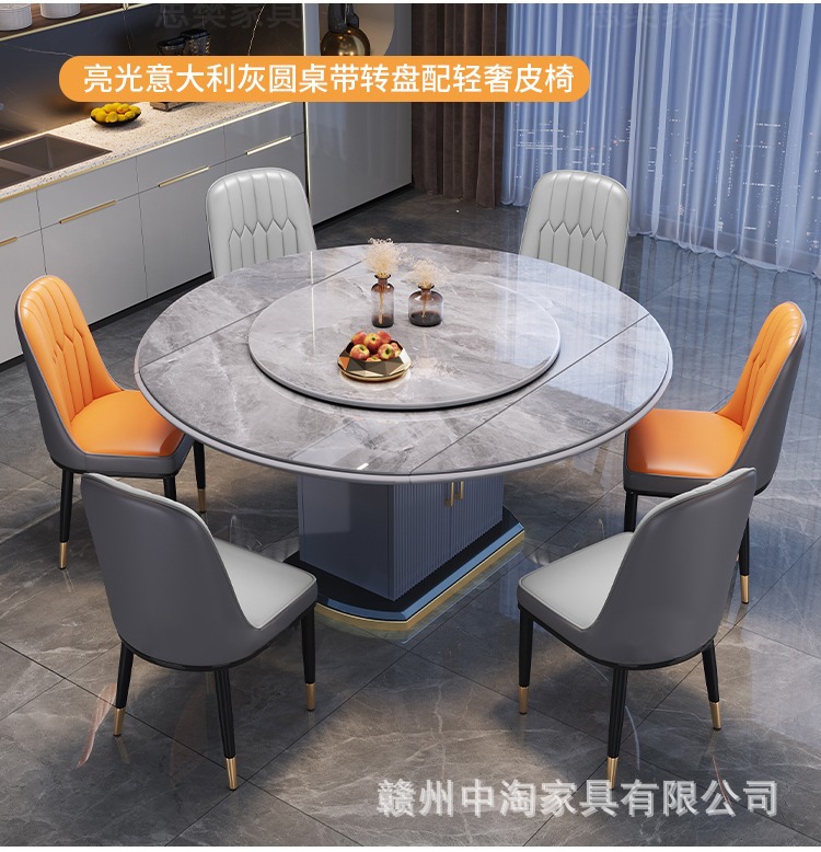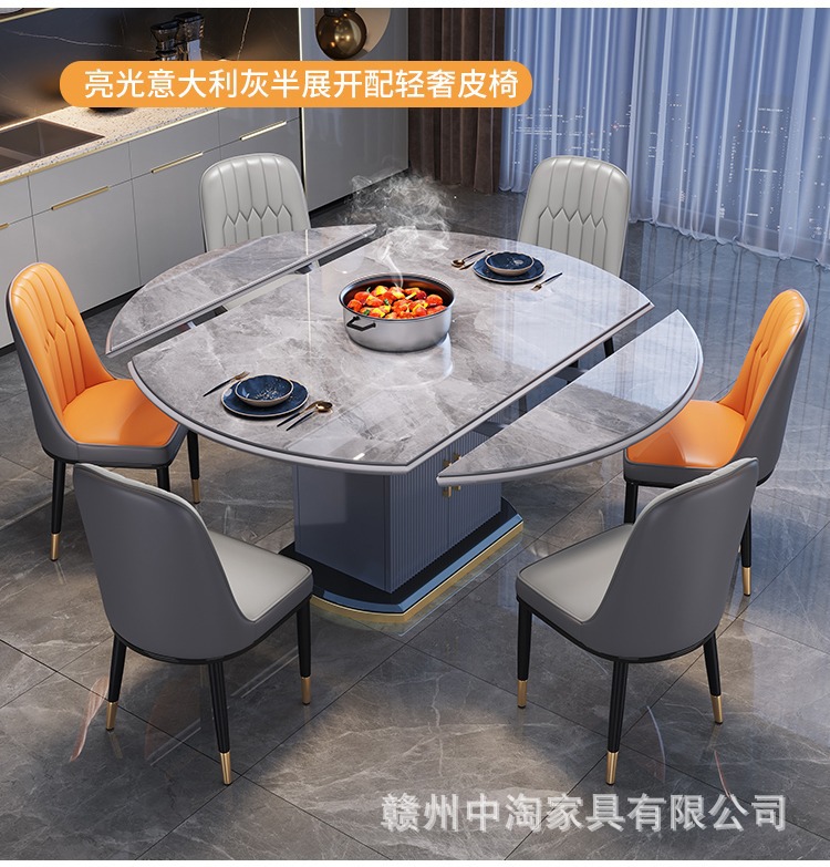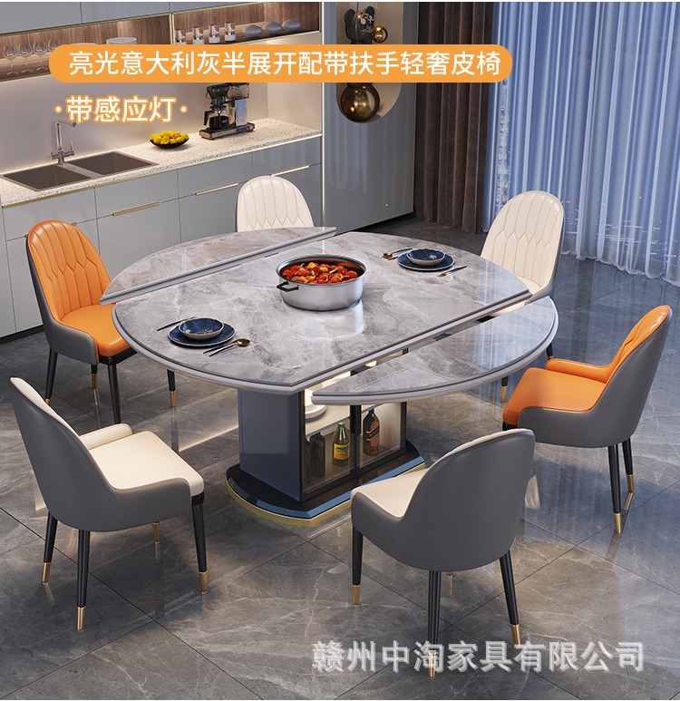 Bàn ăn bằng đá phiến Ý hiện đại đơn giản Bàn ăn gấp bằng kính thiên văn có đèn lưu trữ bếp từ Bàn tròn sang trọng có bàn xoay