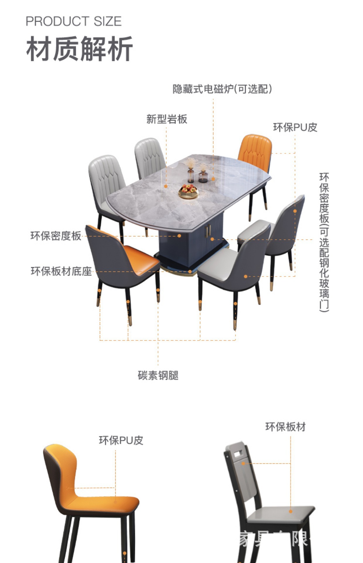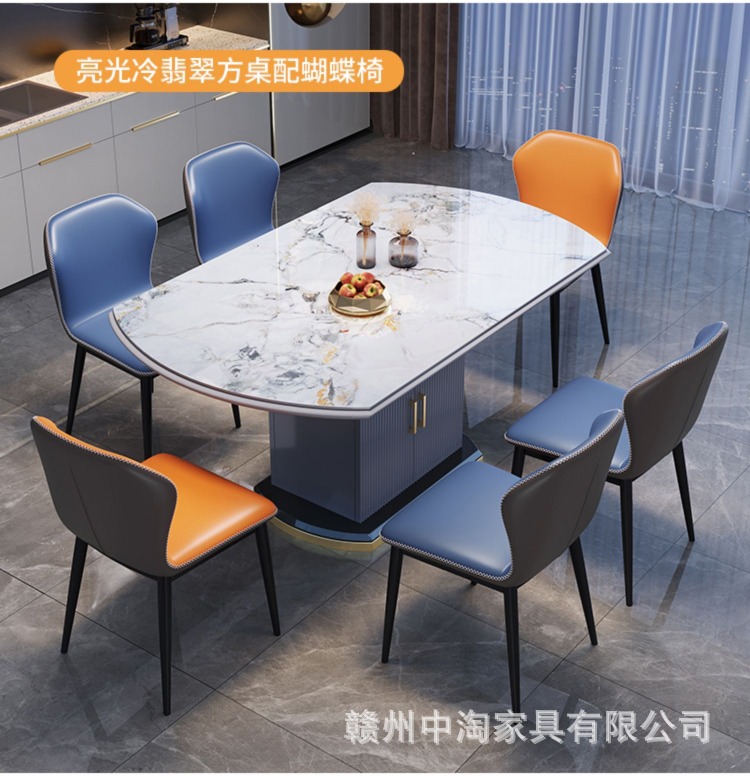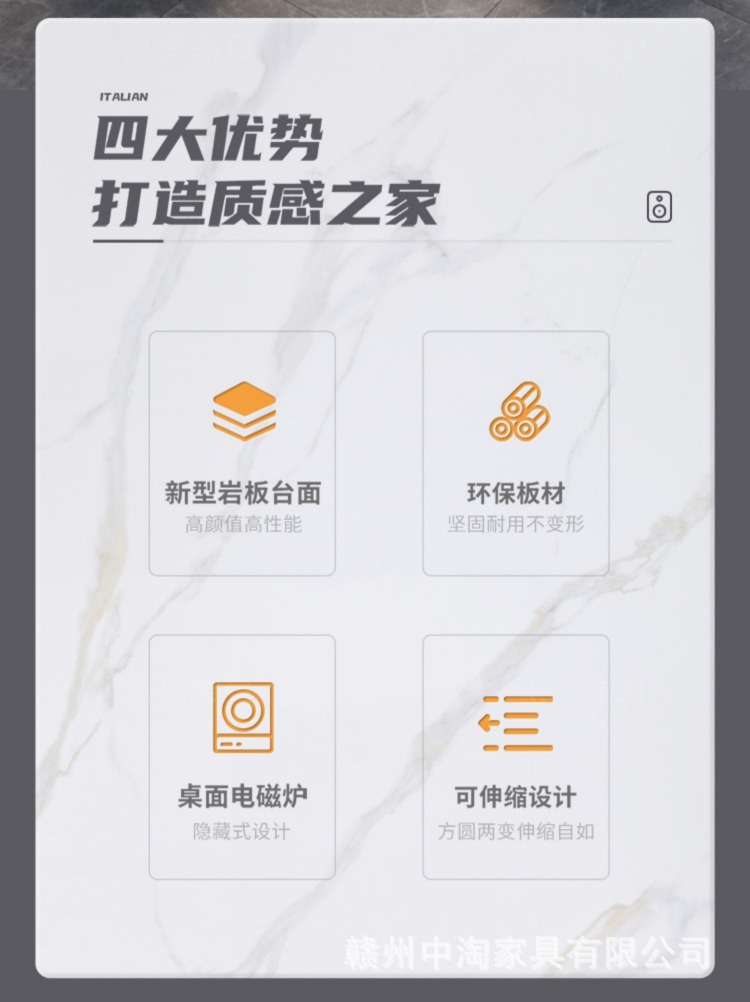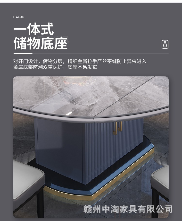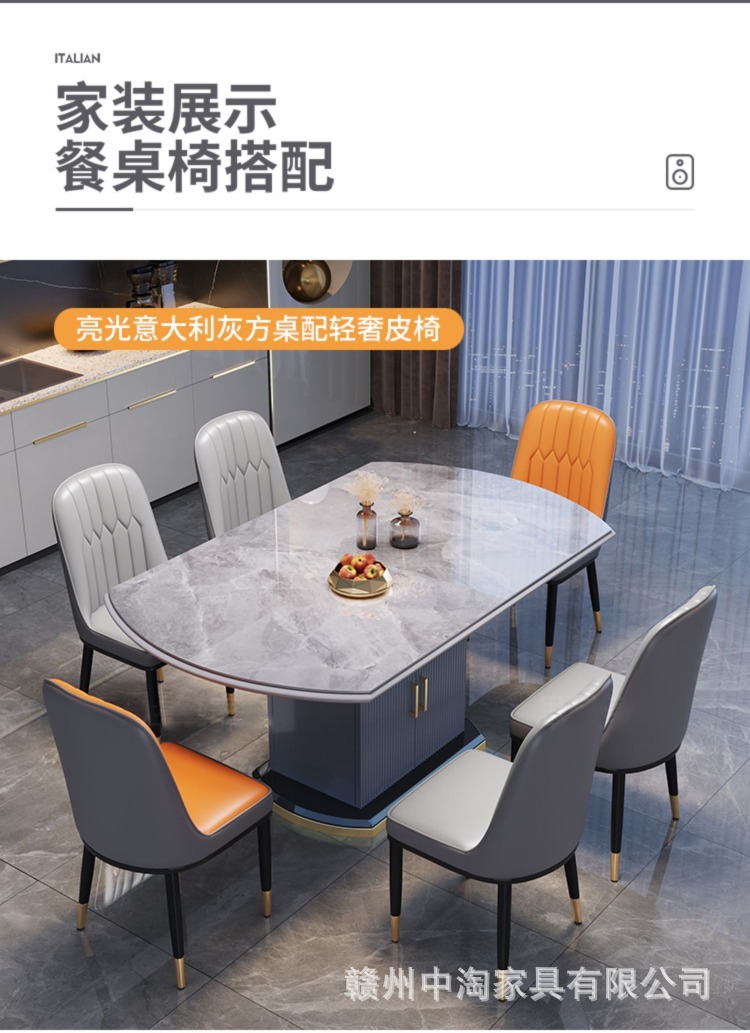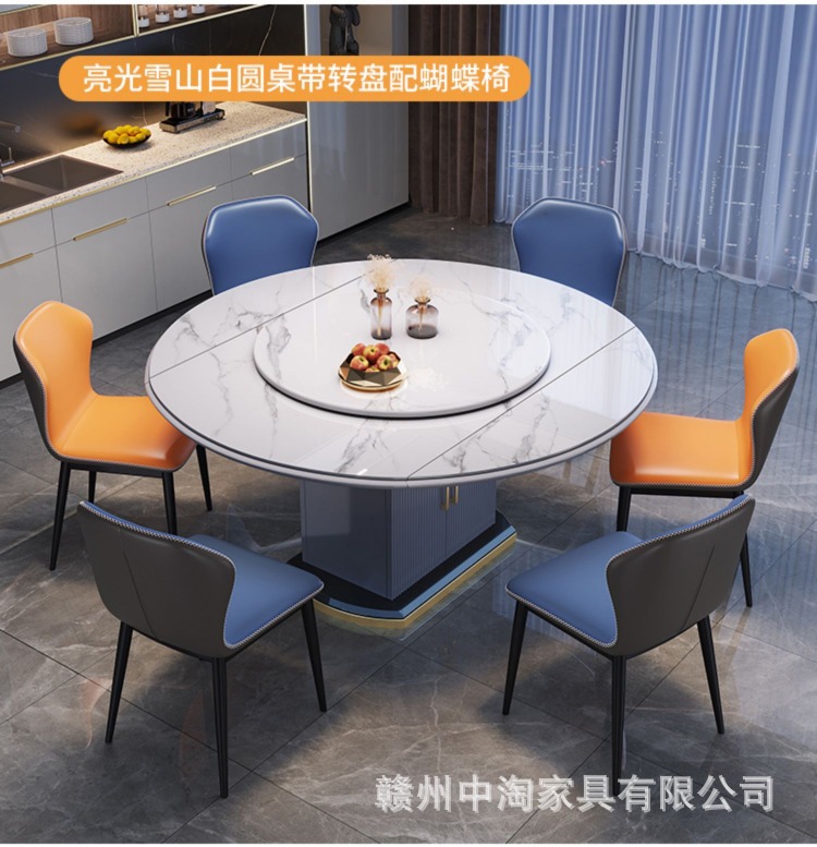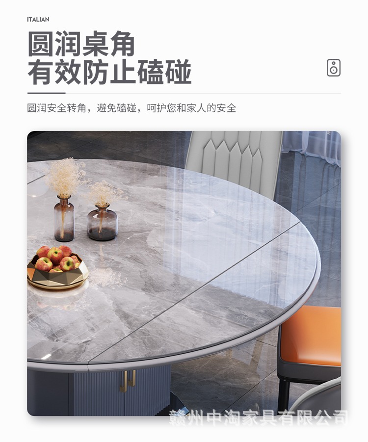 Bàn ăn bằng đá phiến Ý hiện đại đơn giản Bàn ăn gấp bằng kính thiên văn có đèn lưu trữ bếp từ Bàn tròn sang trọng có bàn xoay