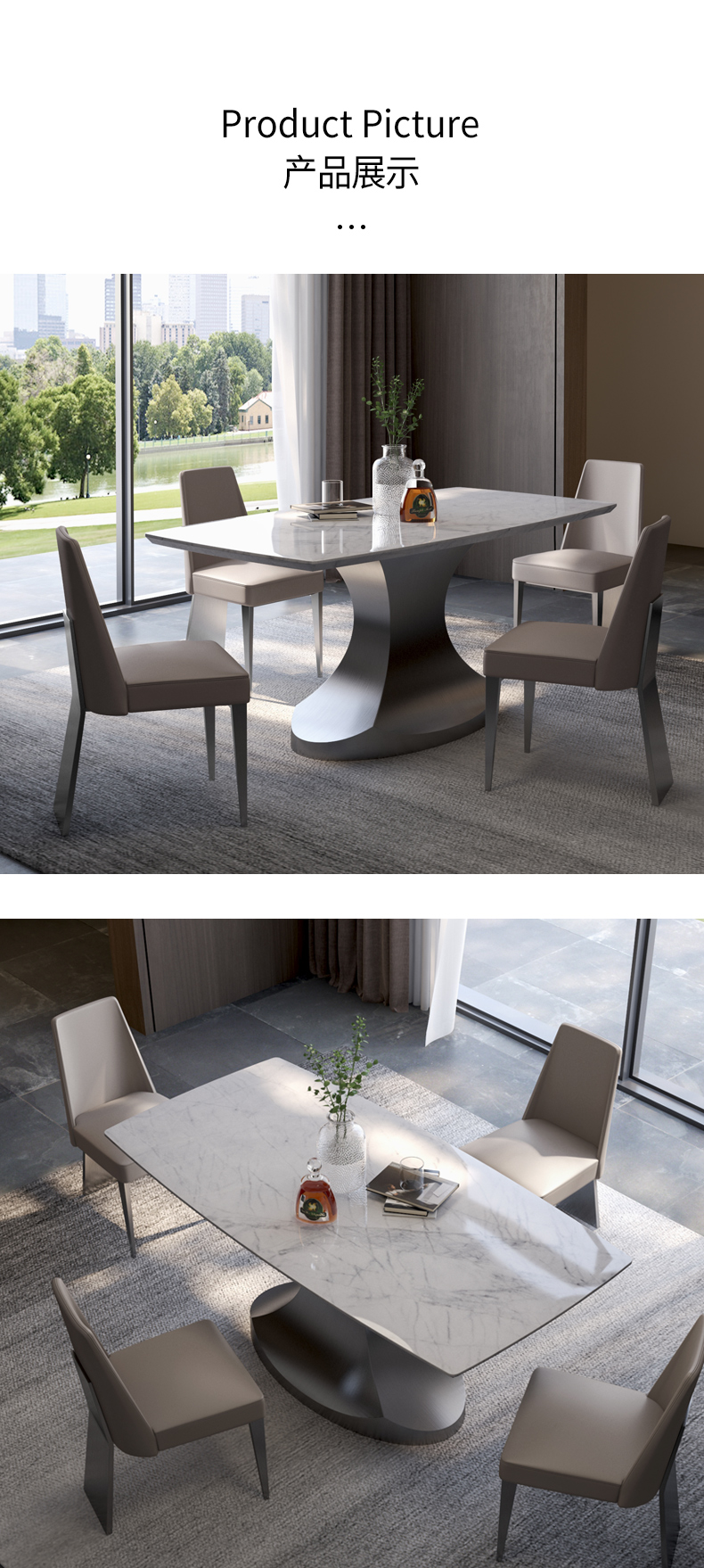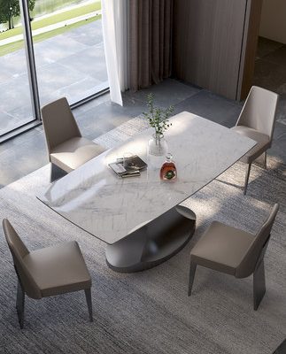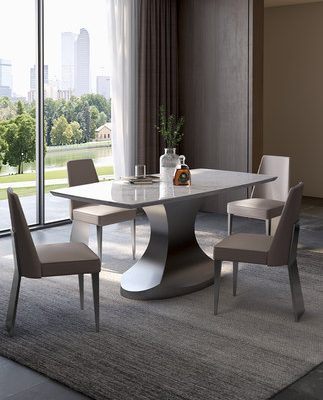 Bàn ăn bề mặt đá cẩm thạch sang trọng,màu xám hiện đại. là sản phẩm nổi bật trong dòng bàn ăn nhập khẩu, thiết kế hiện đại và sang trọng, phù hợp với nhiều không gian nội thất cao cấp.