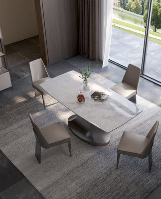 Bàn ăn bề mặt đá cẩm thạch sang trọng,màu xám hiện đại. – Bàn ăn nhập khẩu cao cấp