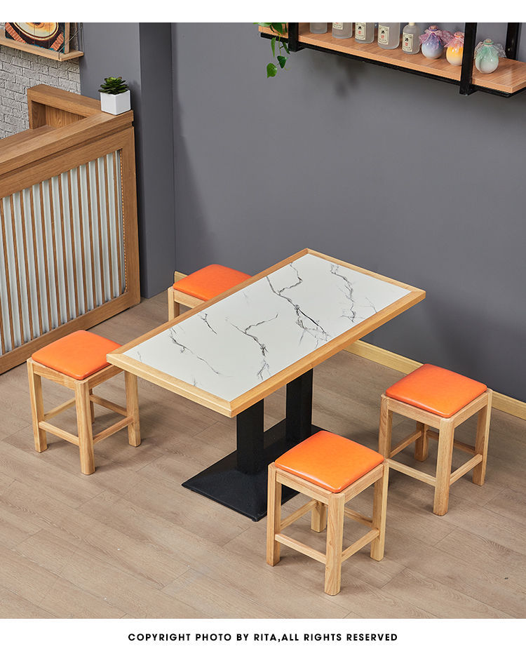 Bàn ăn cửa hàng phục vụ thương mại gỗ đặc viền đá cẩm thạch – BGCF-645 – Mã sản phẩm BGCF-645. Bàn ăn cửa hàng phục vụ thương mại gỗ đặc viền đá cẩm thạch bàn ăn nhanh và bàn ghế cửa hàng tráng miệng nhà hàng kết hợp nhà hàng