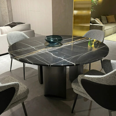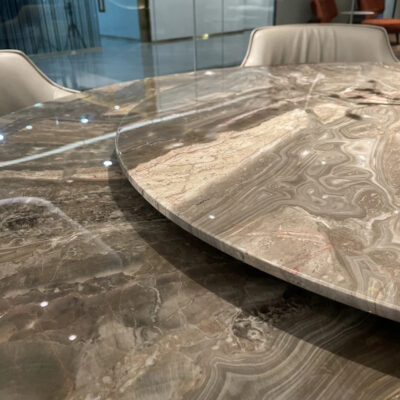 Bàn Ăn Đá Cẩm Thạch Tự Nhiên Bàn Tròn Bề Mặt Nâu Venetian Dày Sáng Sang Trọng Baxter Home Cao Cấp Bàn Xoay Bàn Cơm