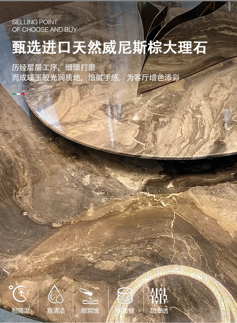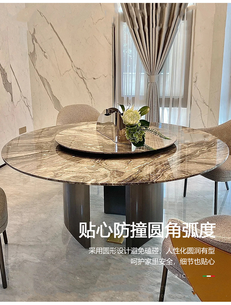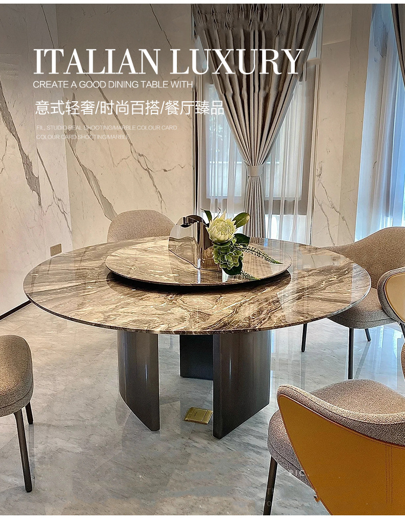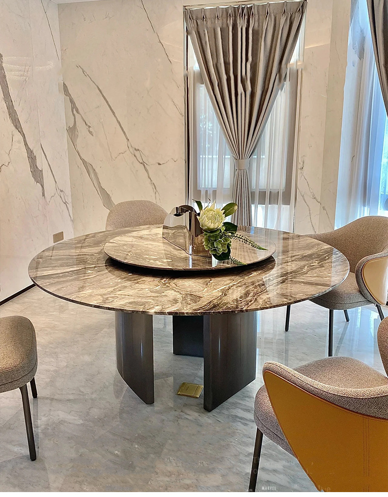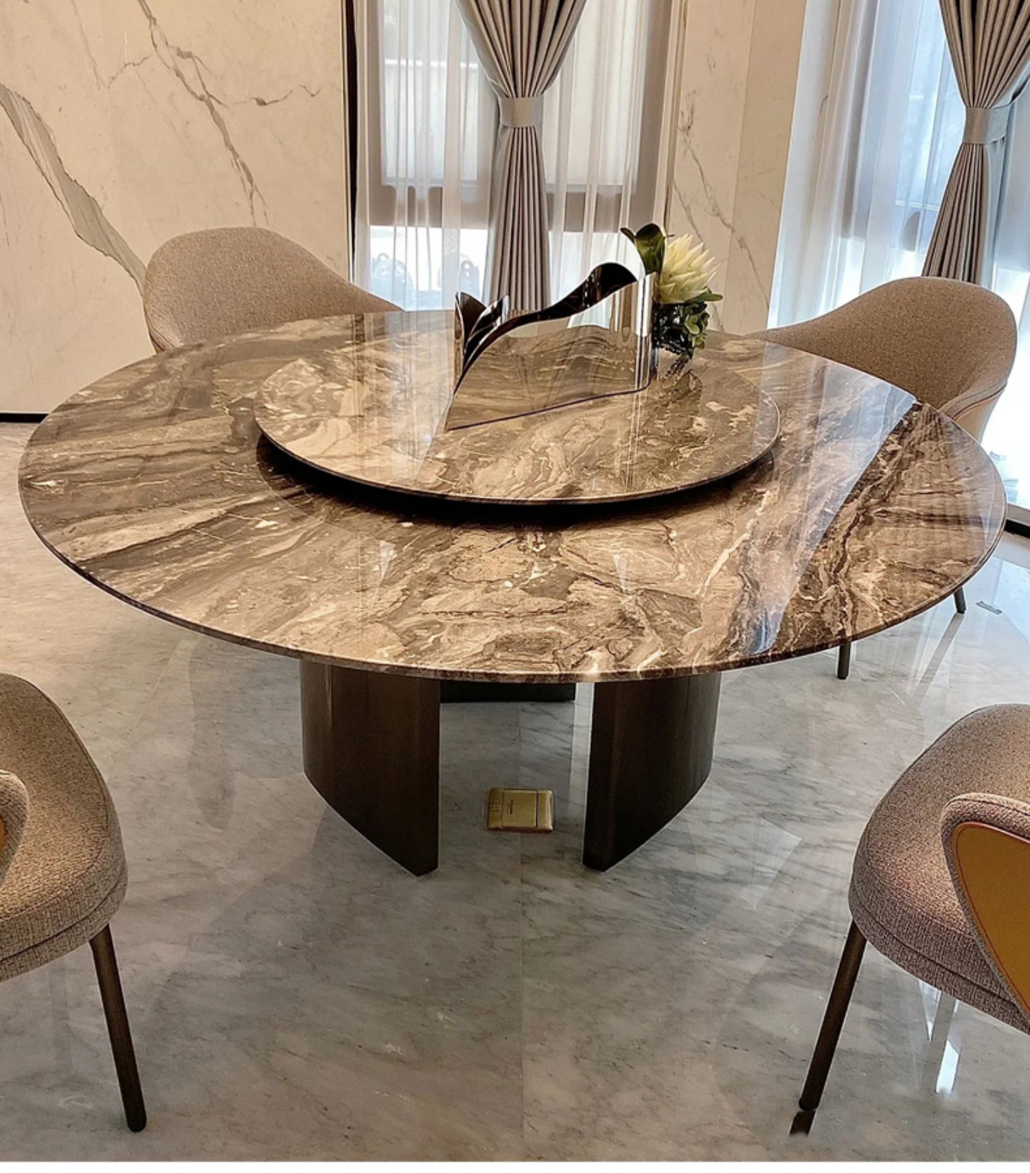 Bàn Ăn Đá Cẩm Thạch Tự Nhiên Bàn Tròn Bề Mặt Nâu Venetian Dày Sáng Sang Trọng Baxter Home Cao Cấp Bàn Xoay Bàn Cơm