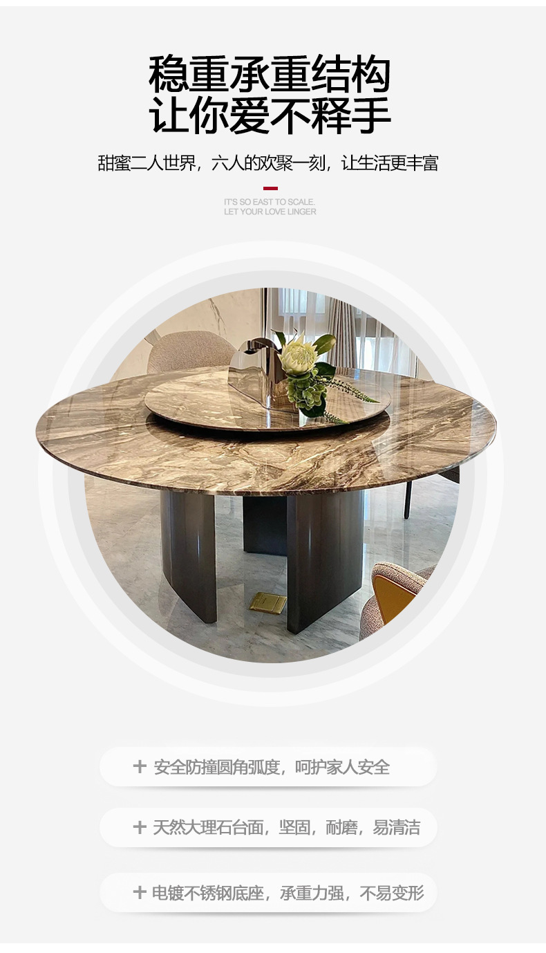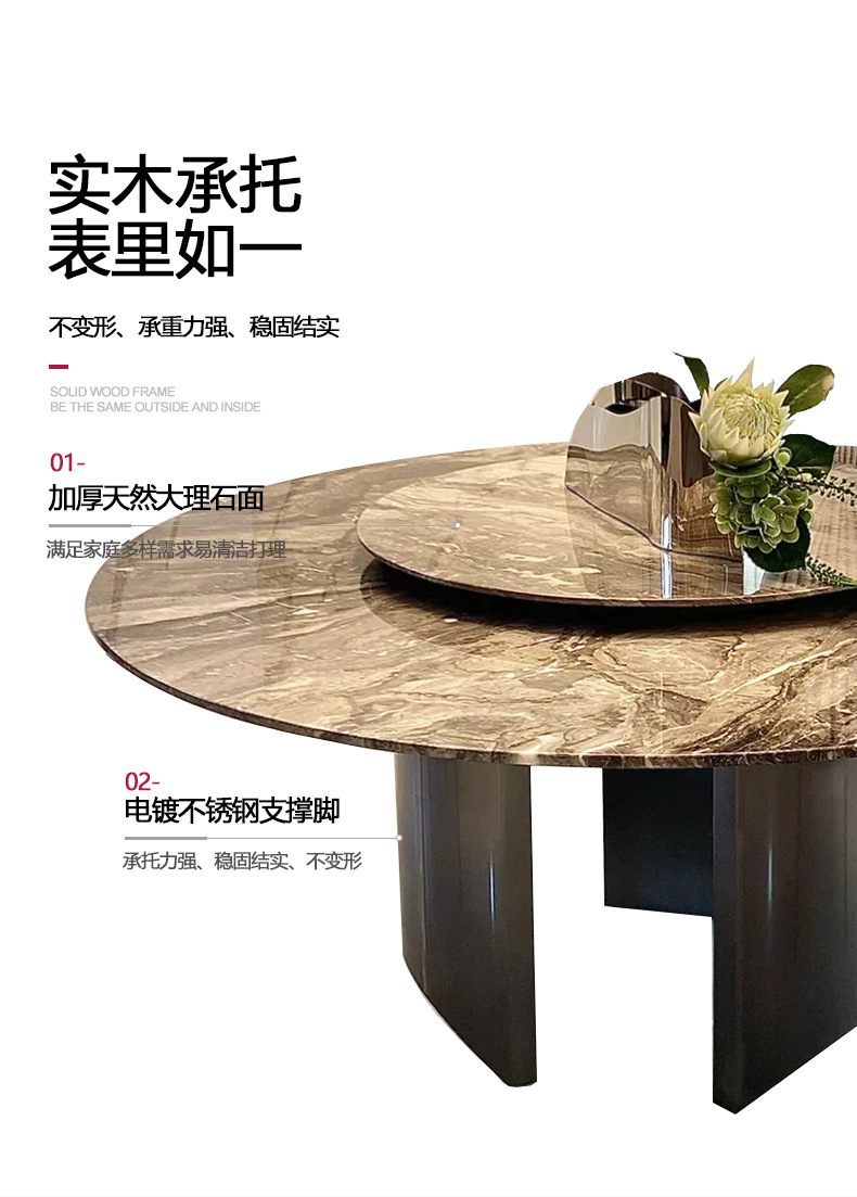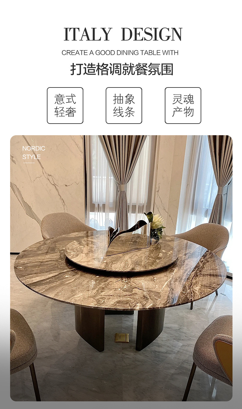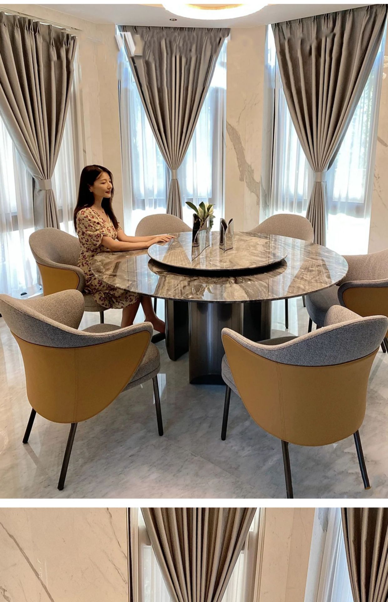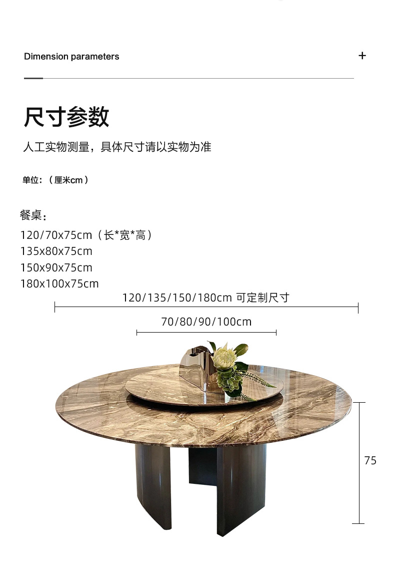 Bàn Ăn Đá Cẩm Thạch Tự Nhiên Bàn Tròn Bề Mặt Nâu Venetian Dày Sáng Sang Trọng Baxter Home Cao Cấp Bàn Xoay Bàn Cơm