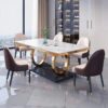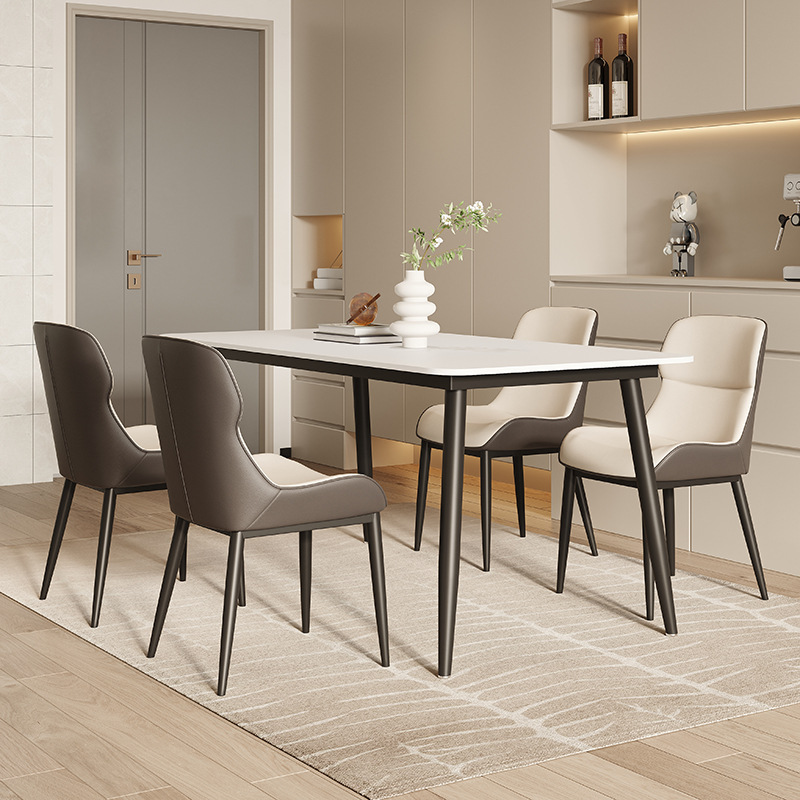 Bàn ăn đá phiến hiện đại đơn giản, gia đình phòng nhỏ, bàn ăn hình chữ nhật màu trắng tinh khiết, Ghế ăn đá phiến Inno kết hợp.