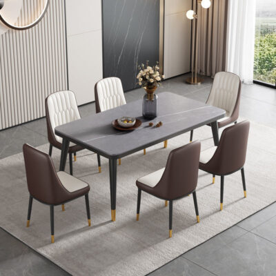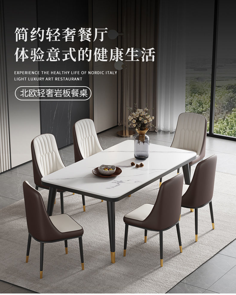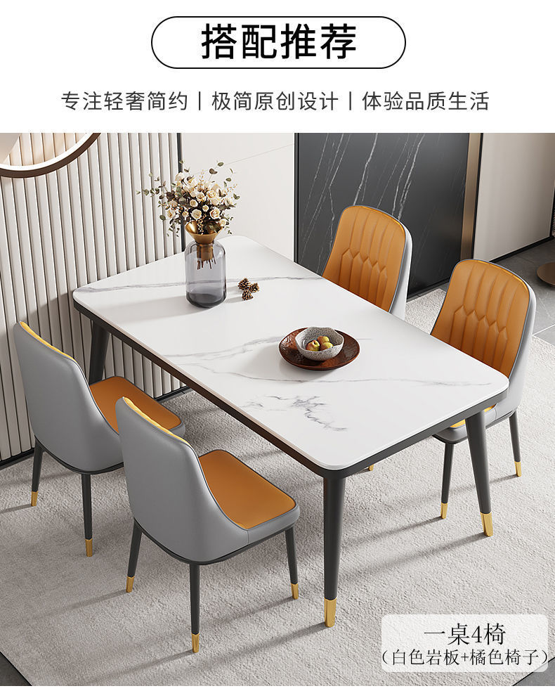 Bàn ăn đá phiến Internet nổi tiếng, ghế ăn đá kết hợp, gia đình nhỏ, Bộ bàn ghế hình chữ nhật dành cho nhà máy ăn uống gia đình.
