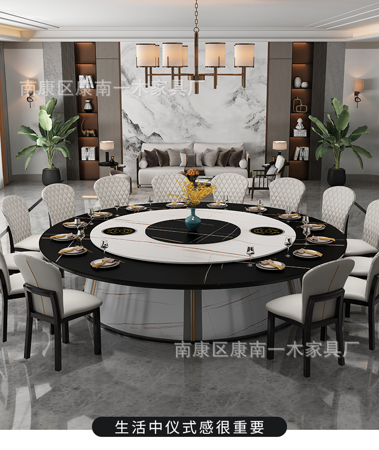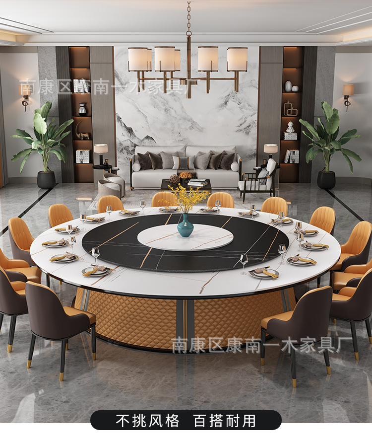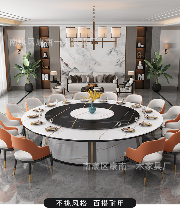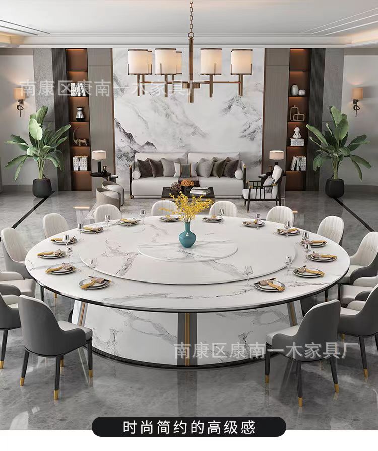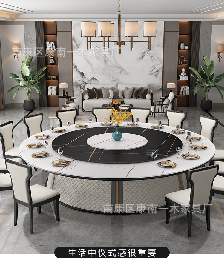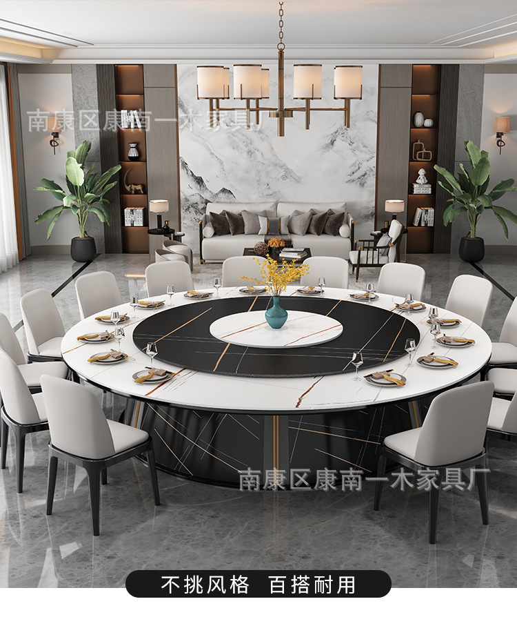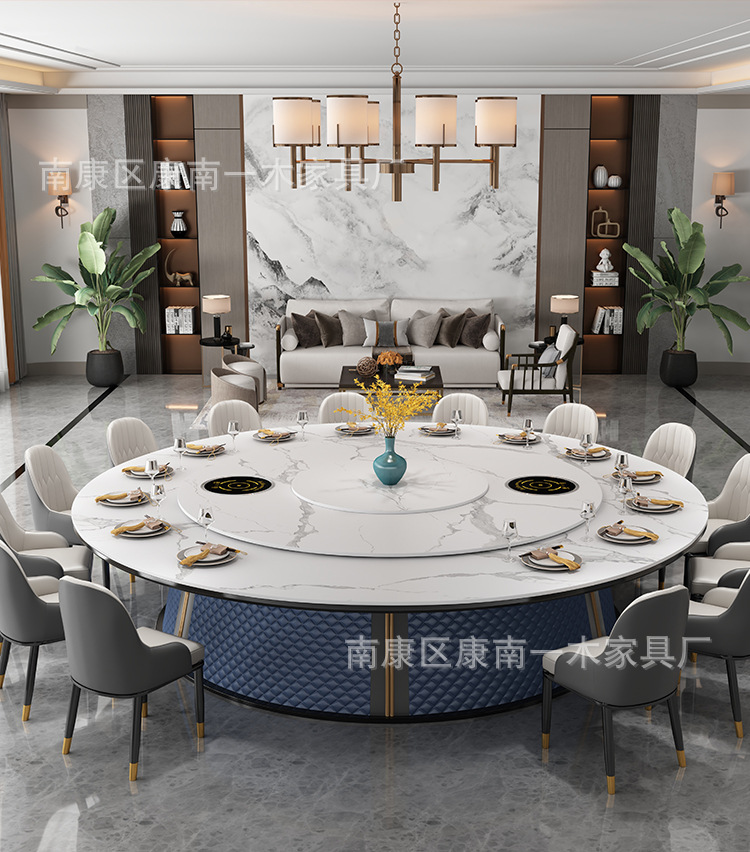 Bàn ăn đá phiến khách sạn điện bàn tròn lớn sang trọng cao cấp câu lạc bộ nhà hàng hiện đại 10 người 20 người bàn tiệc lẩu