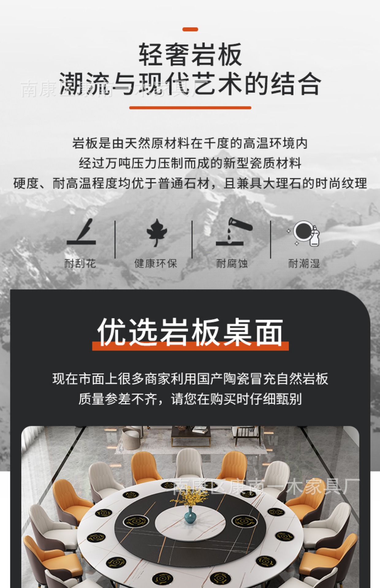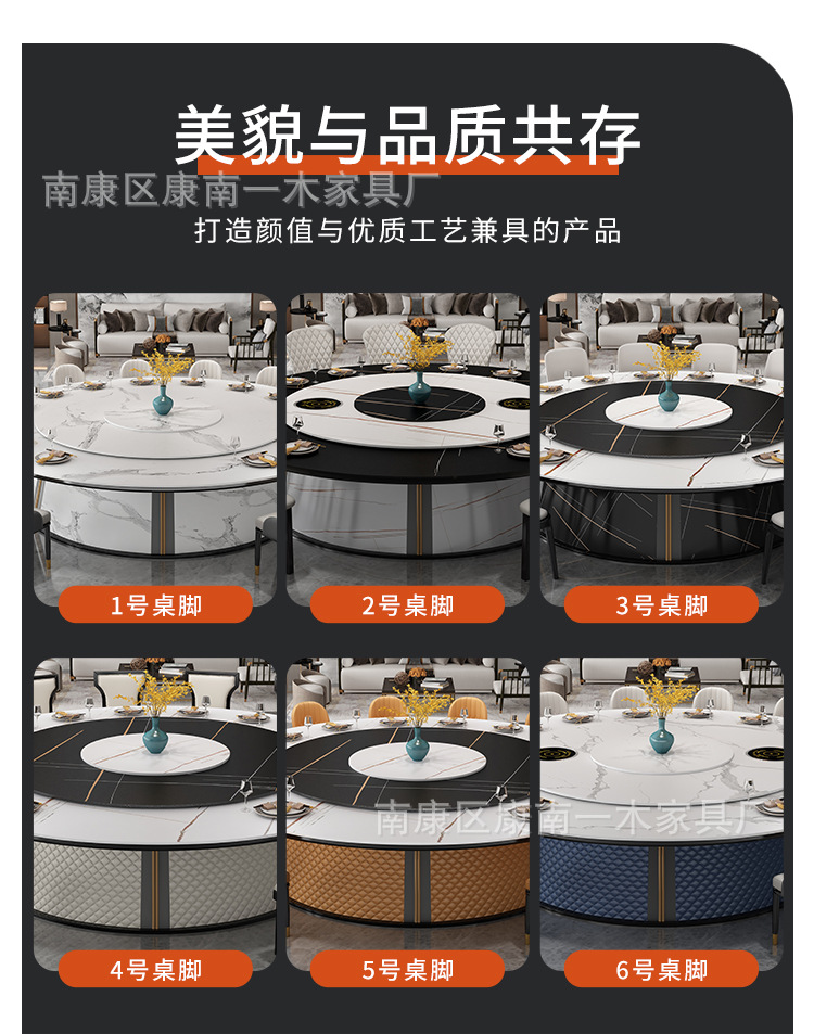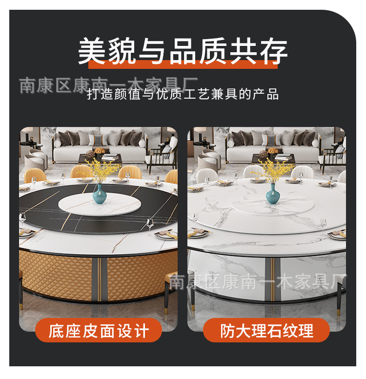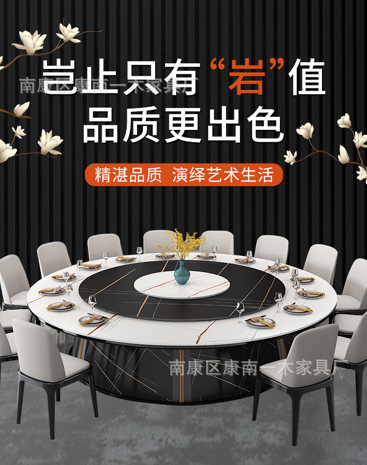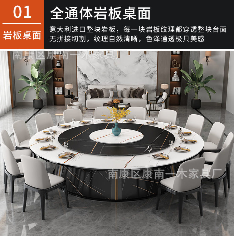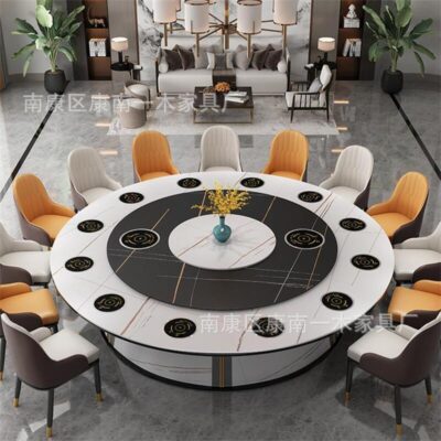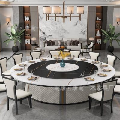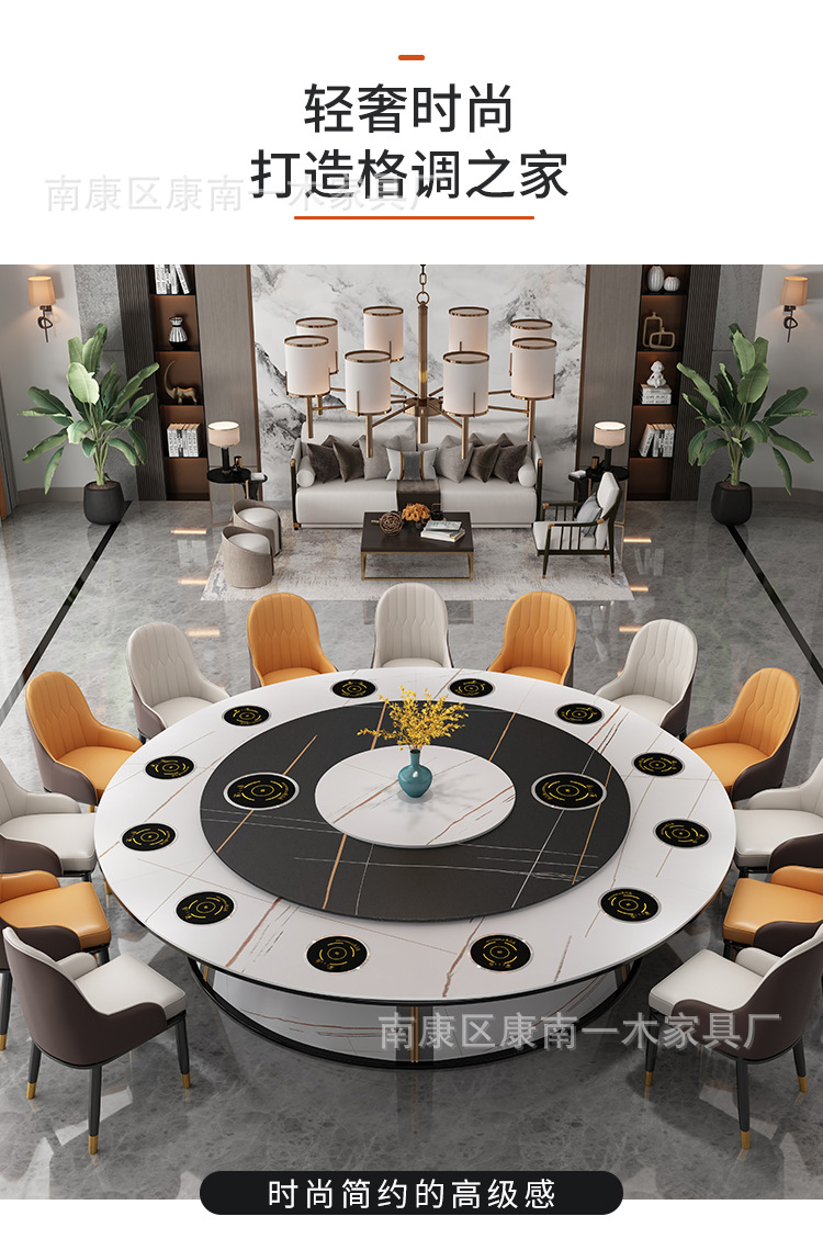 Bàn ăn đá phiến khách sạn điện bàn tròn lớn sang trọng cao cấp câu lạc bộ nhà hàng hiện đại 10 người 20 người bàn tiệc lẩu