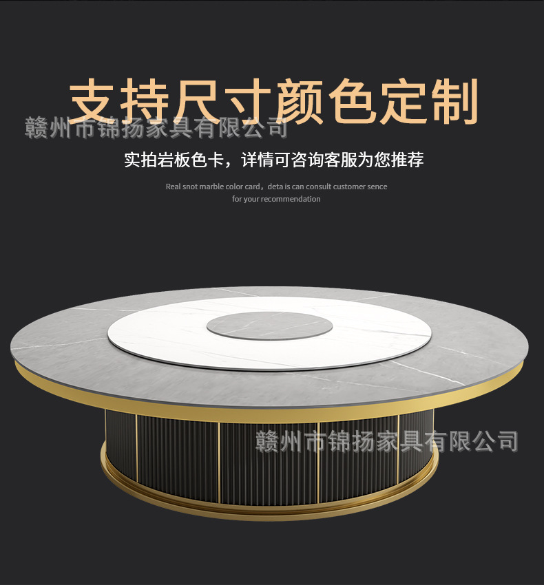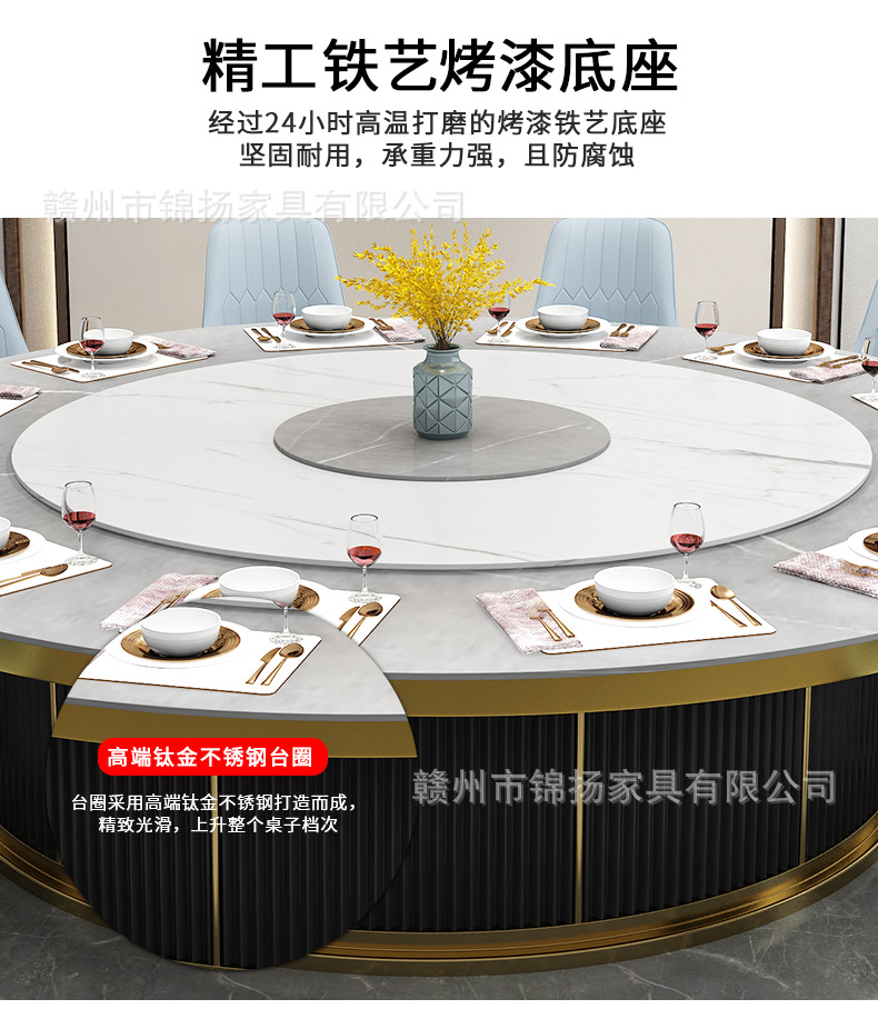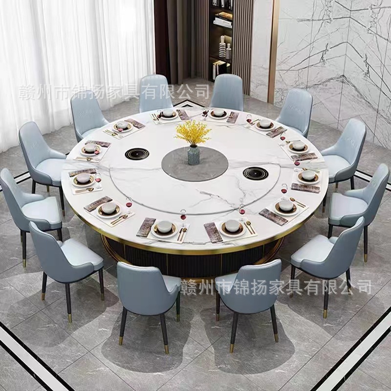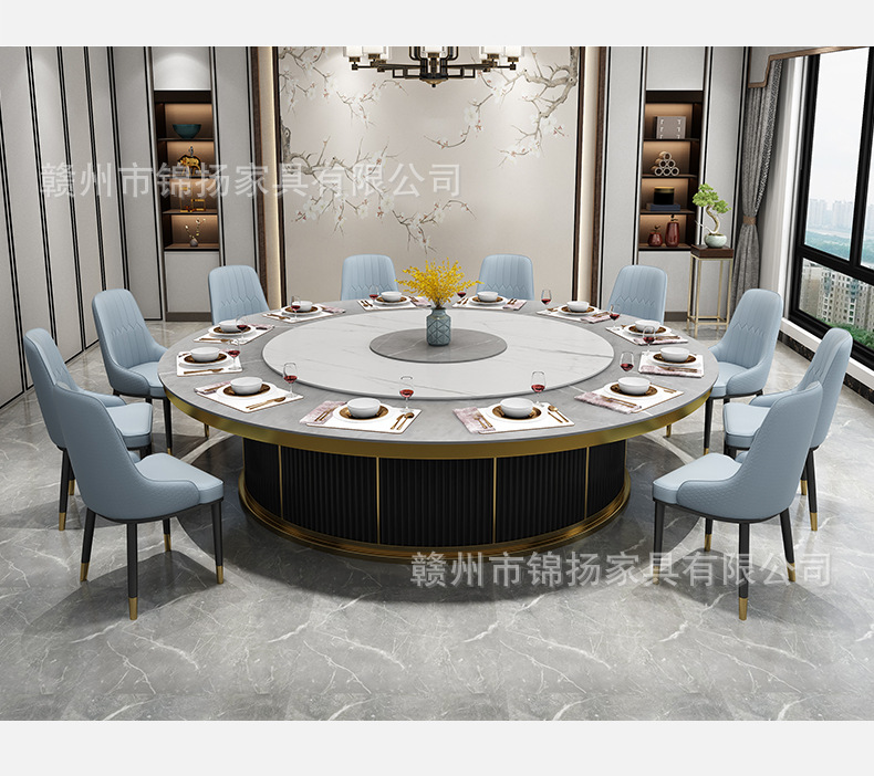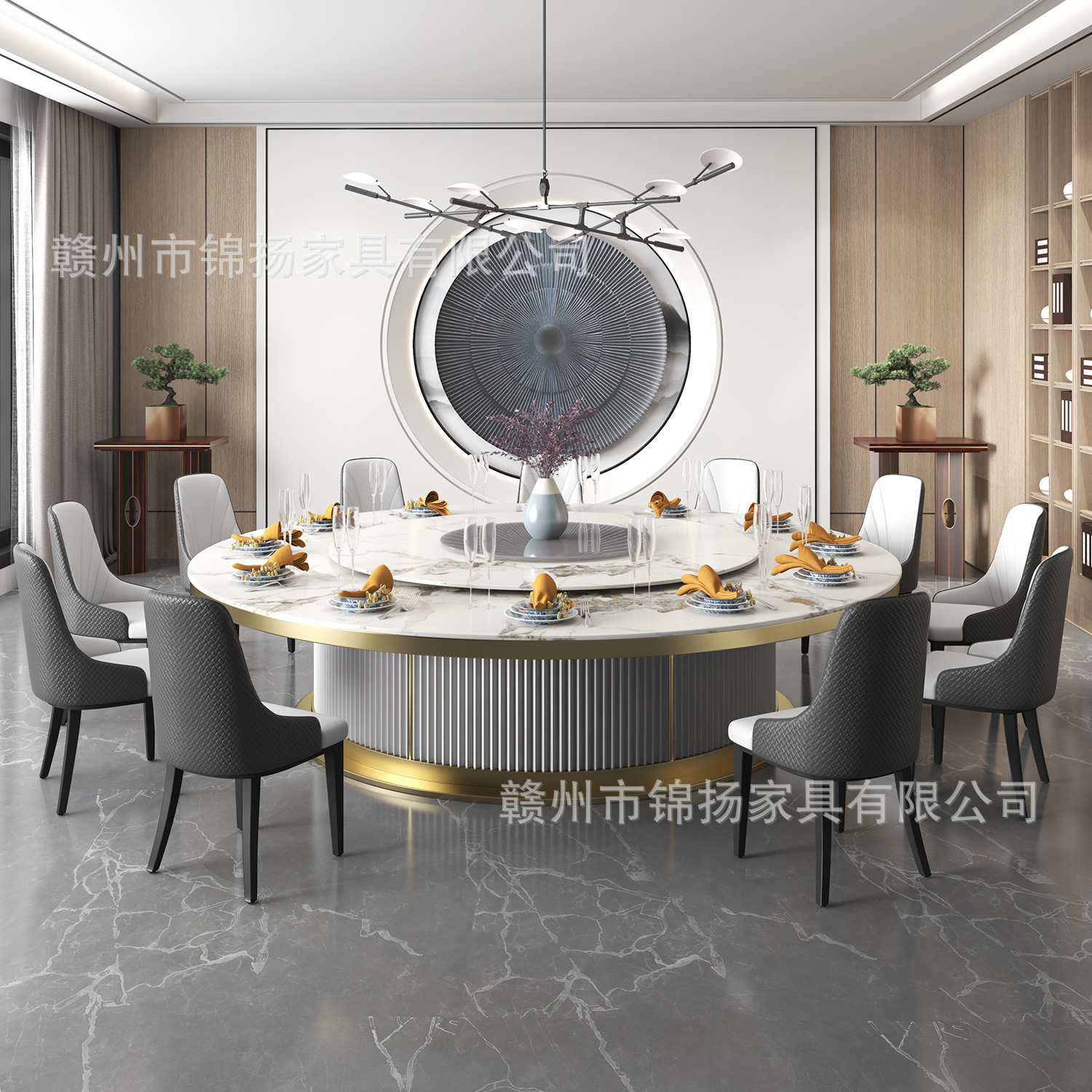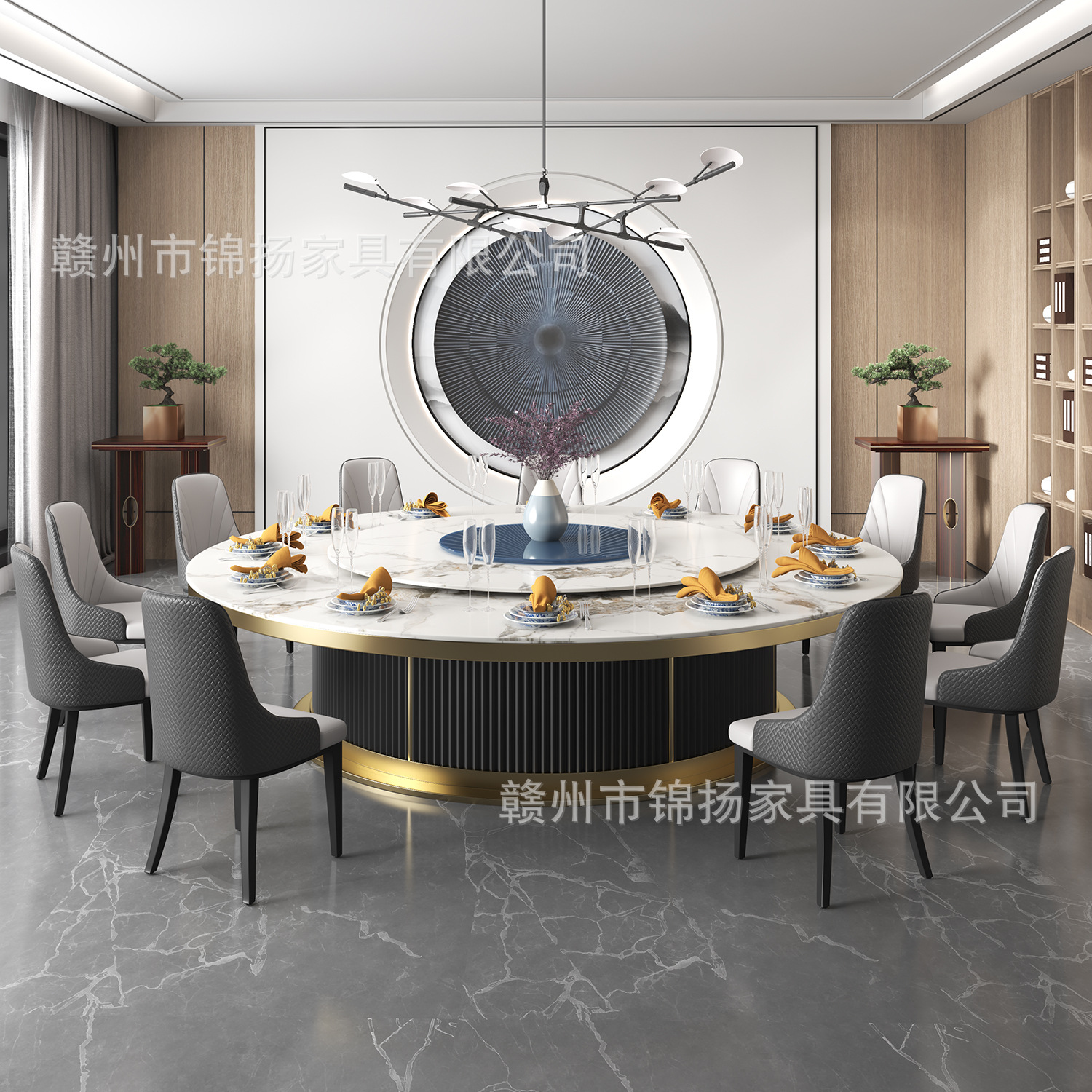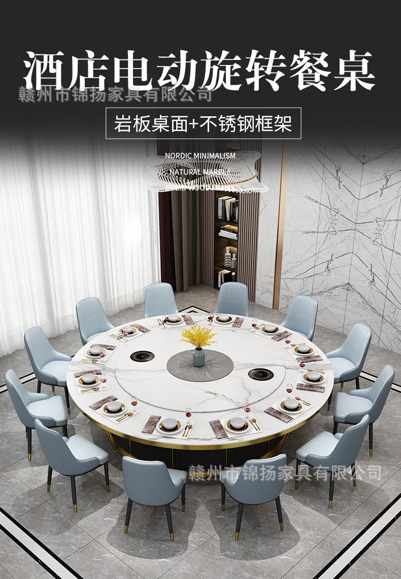 Bàn ăn đá phiến khách sạn đơn giản, nhẹ nhàng và sang trọng, bàn tròn xoay tự động lớn, nhà hàng hộp khách sạn, bàn ăn đặc biệt phòng khách gia đình