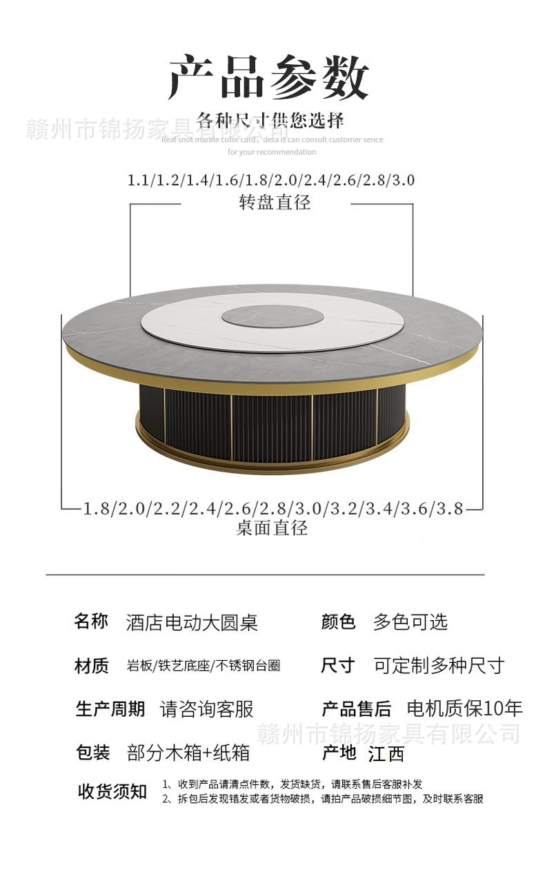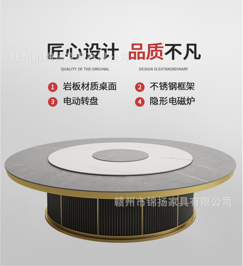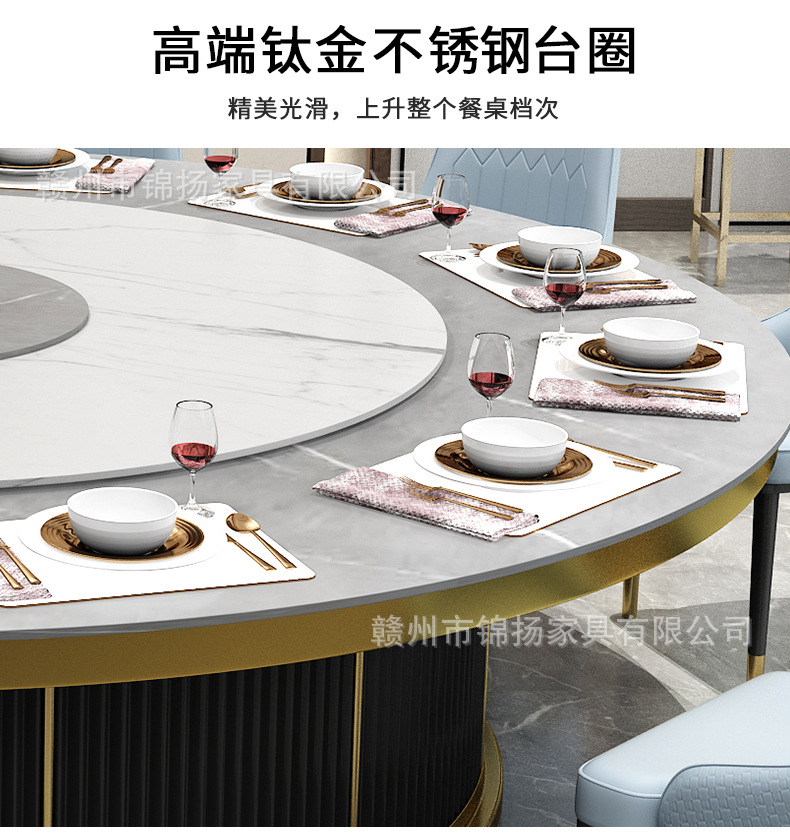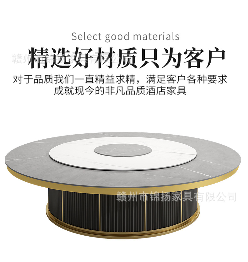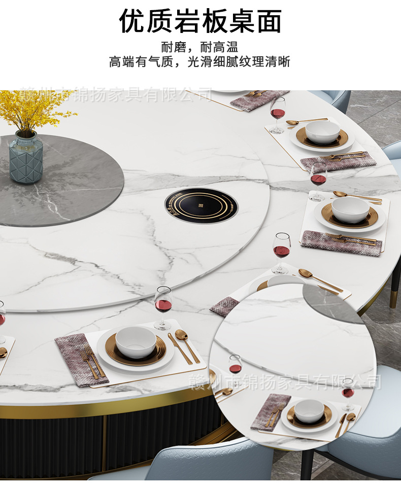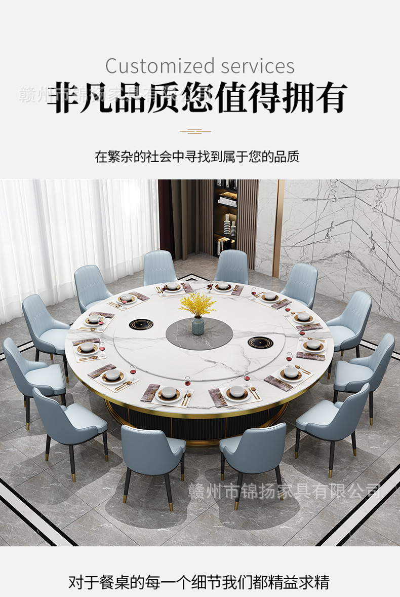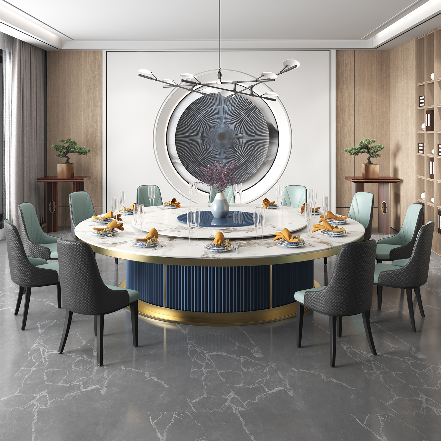 Bàn ăn đá phiến khách sạn đơn giản, nhẹ nhàng và sang trọng, bàn tròn xoay tự động lớn, nhà hàng hộp khách sạn, bàn ăn đặc biệt phòng khách gia đình