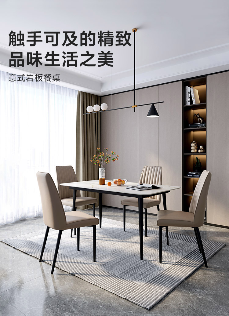 Bàn ăn đá phiến kiểu Ý cho hộ gia đình căn hộ nhỏ hiện đại tối giản nhẹ nhàng sang trọng
