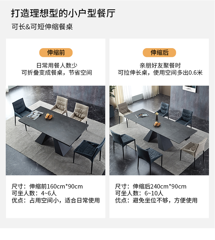 Bàn ăn đá phiến kiểu Ý có thể thu vào hiện đại tối giản nhẹ nhàng sang trọng – Bàn ăn nhập khẩu cao cấp
