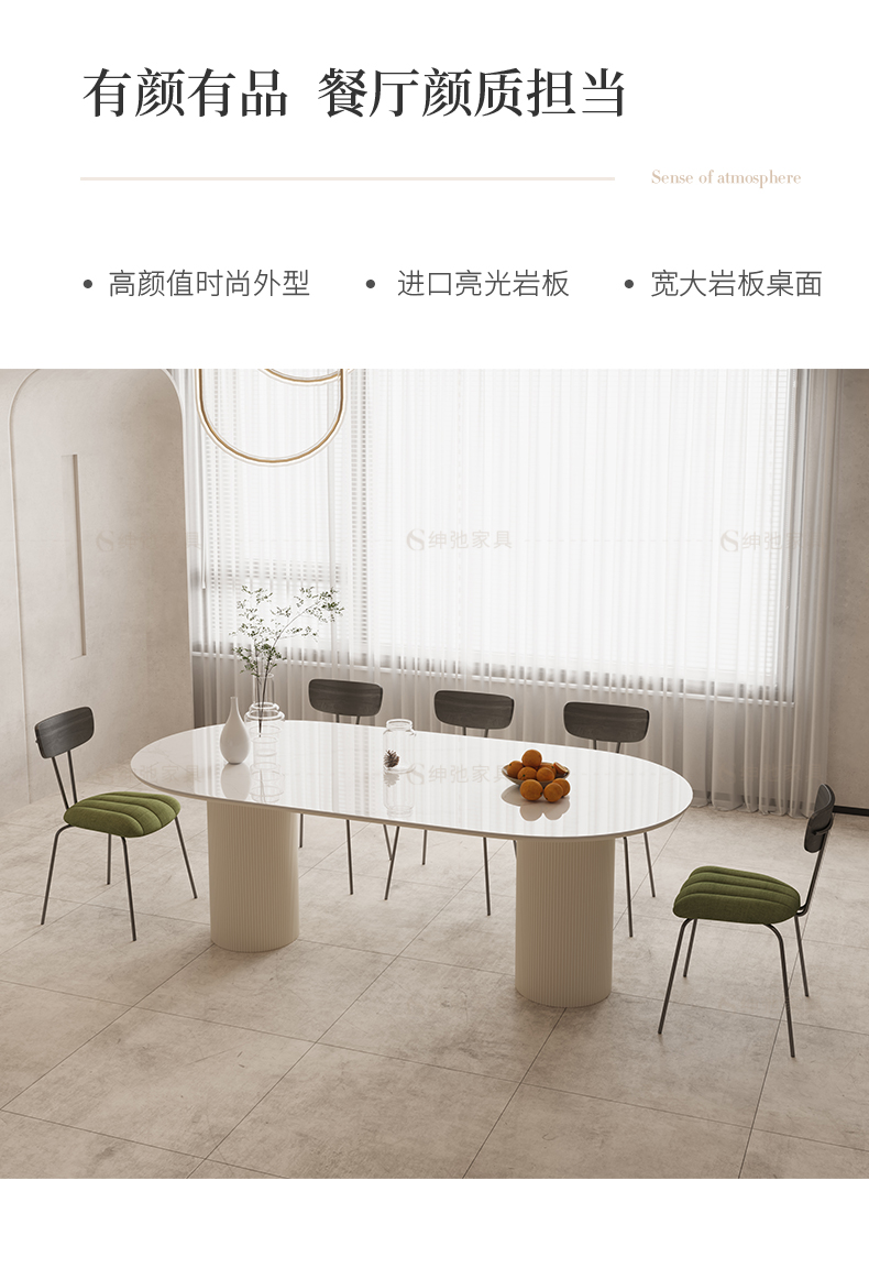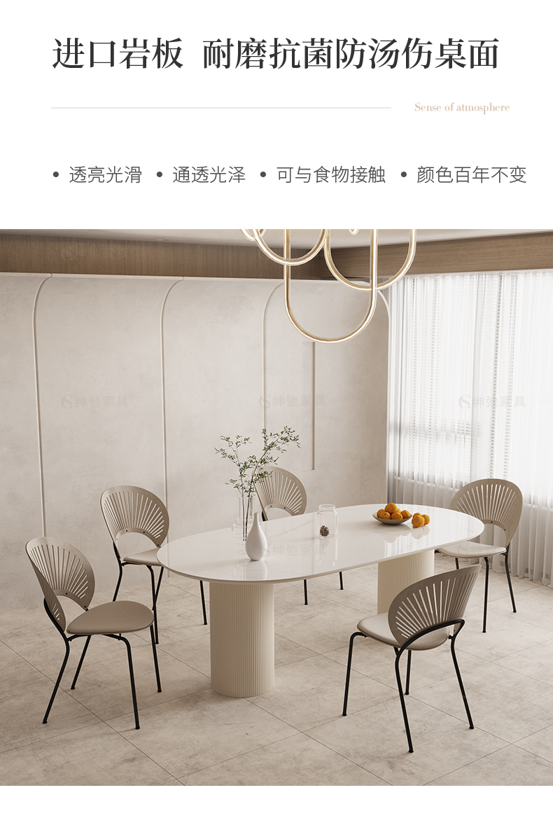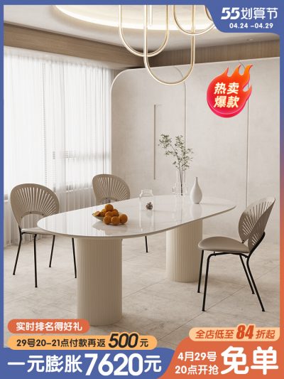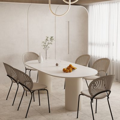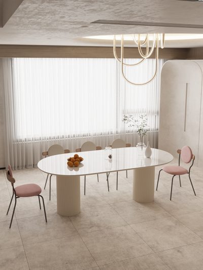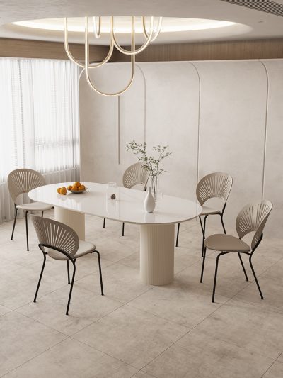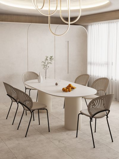 Bàn ăn đá phiến màu trắng tinh tế, hiện đại nhập khẩu. là sản phẩm nổi bật trong dòng bàn ăn nhập khẩu, thiết kế hiện đại và sang trọng, phù hợp với nhiều không gian nội thất cao cấp.