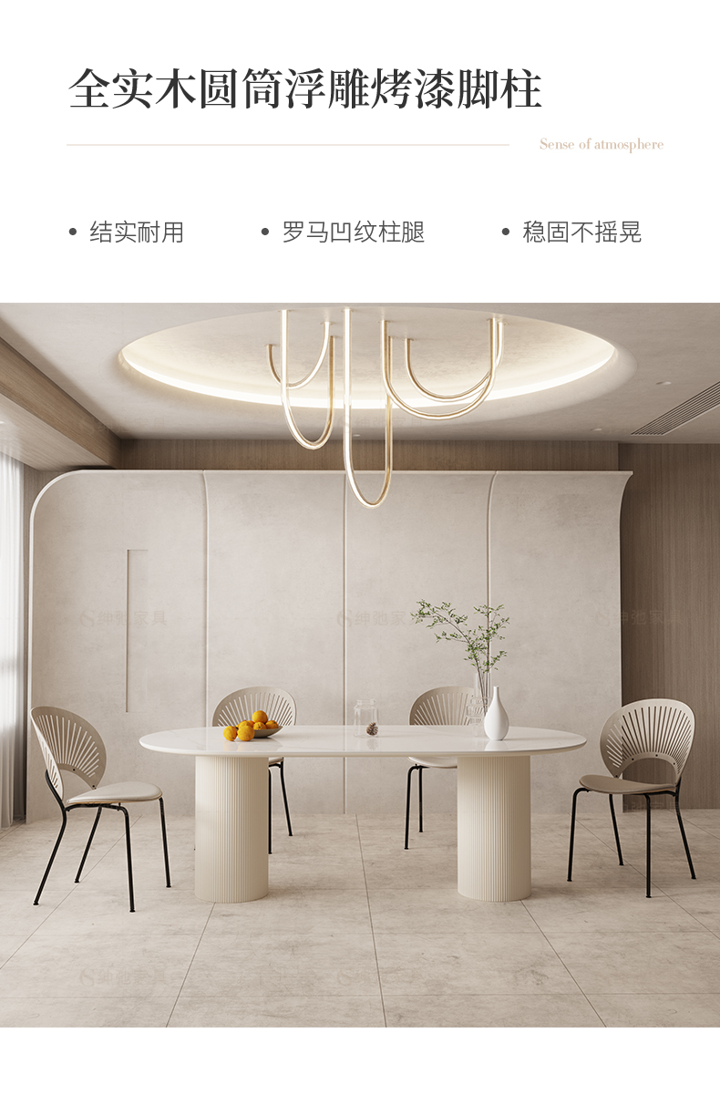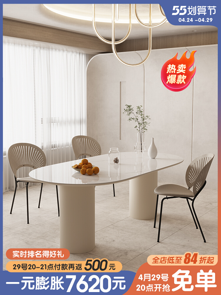 Bàn ăn đá phiến màu trắng tinh tế, hiện đại nhập khẩu.