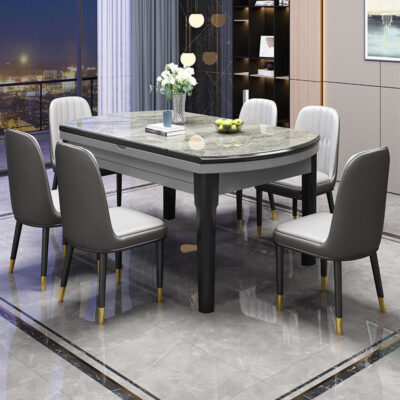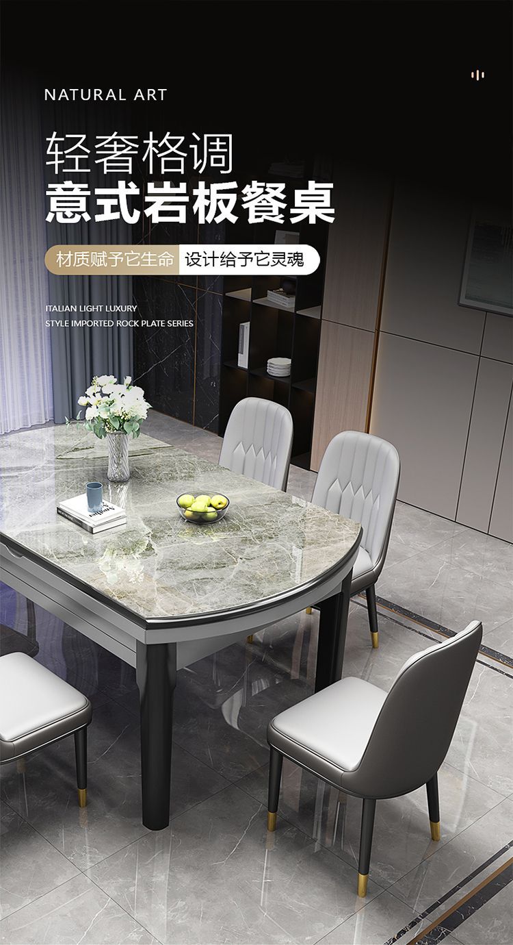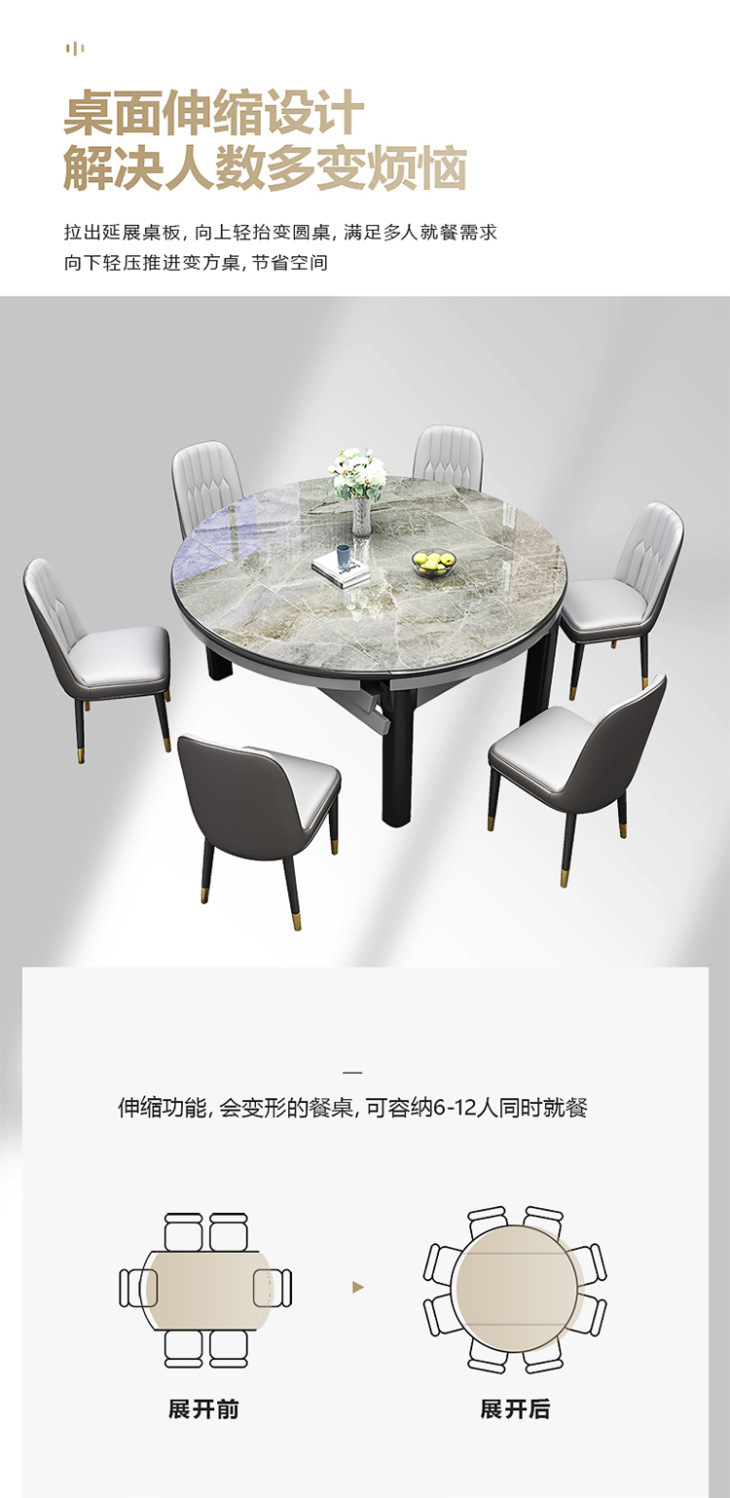Bàn ăn đá phiến nhà Bắc Âu hiện đại có thể thu vào gấp hình tròn tròn kép Ý ánh sáng sang trọng cho thuê nhà bàn ăn