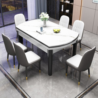 Bàn ăn đá phiến nhà Bắc Âu hiện đại có thể thu vào gấp hình tròn tròn kép Ý ánh sáng sang trọng cho thuê nhà bàn ăn