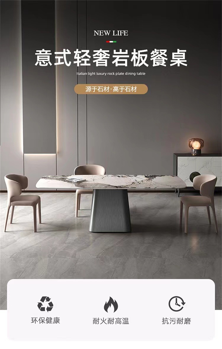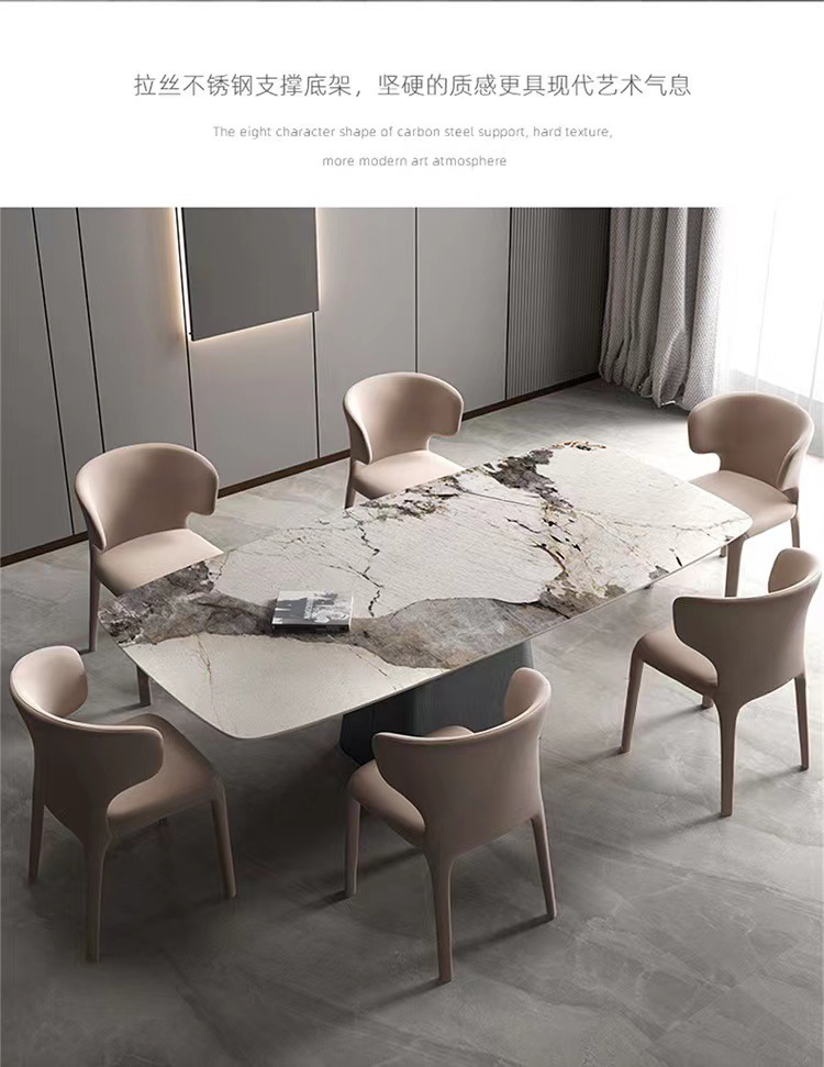 Bàn ăn đá phiến Pandora sáng nhập khẩu thiết kế kiểu Ý sáng sang trọng bằng thép không gỉ bàn ăn gia đình nhỏ