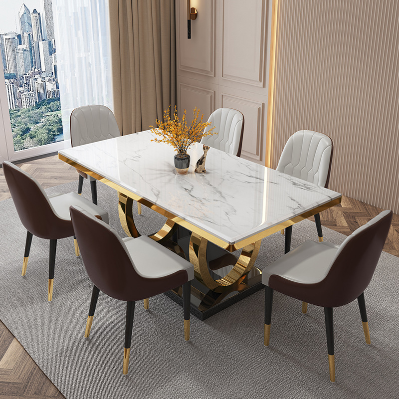 Bàn ăn đá phiến phong cách sang trọng, hiện đại mới của Ý cho gia đình phòng nhỏ, nhà hàng, bàn hình chữ nhật hiện đại cao cấp đơn giản.