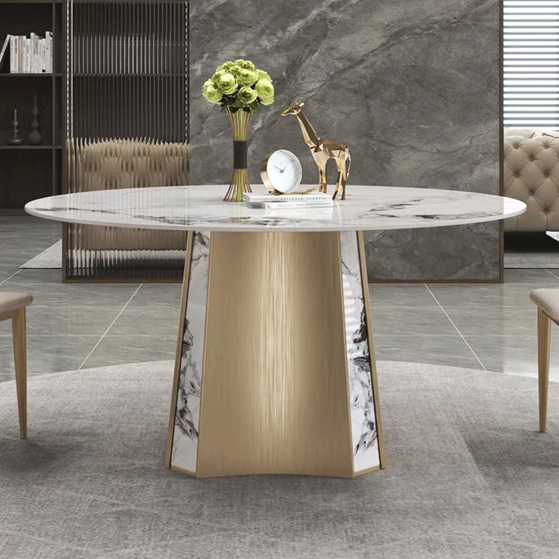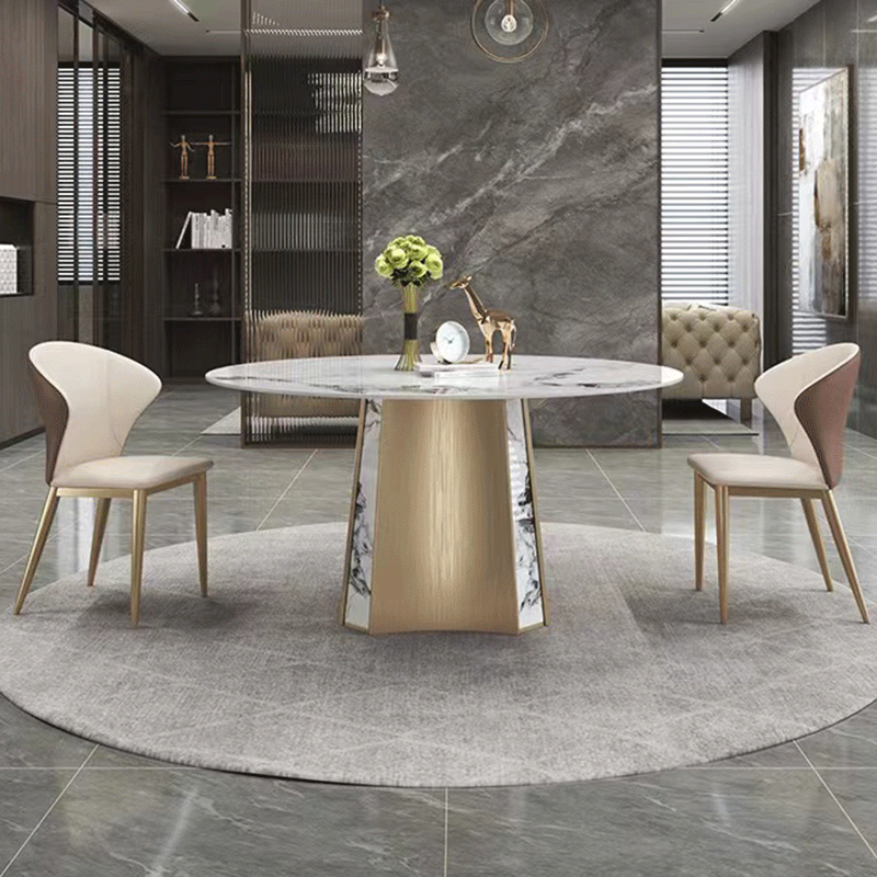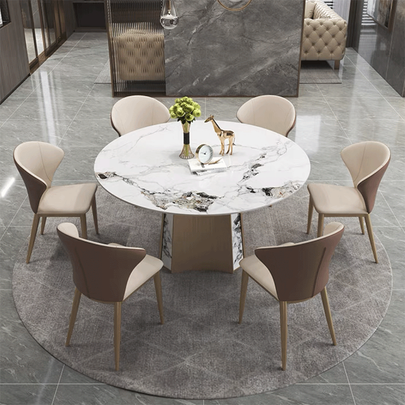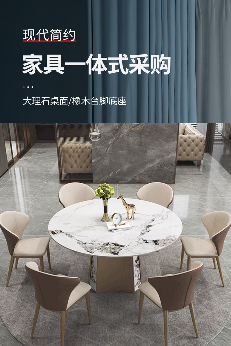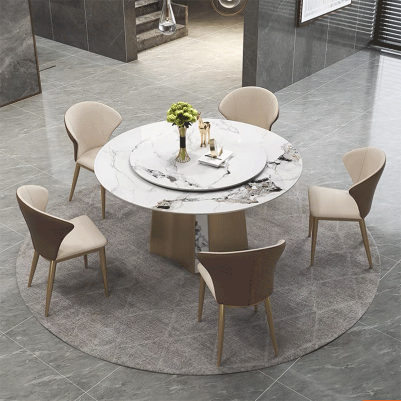 Bàn ăn đá phiến sáng nhà gia đình ánh sáng sang trọng tối giản bàn ăn tròn cao cấp kết hợp bàn ghế ăn với bàn xoay